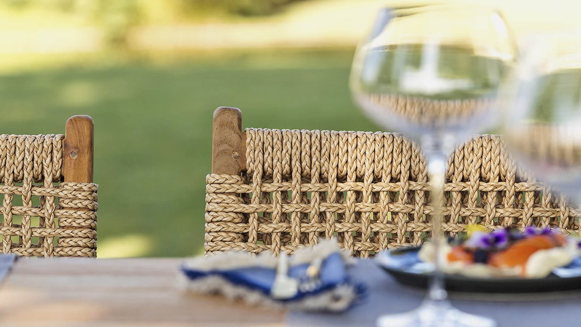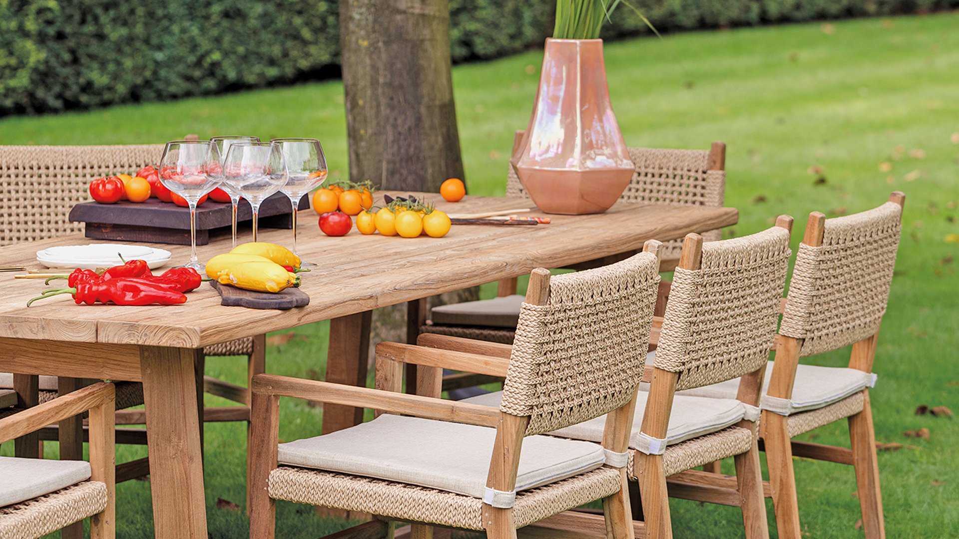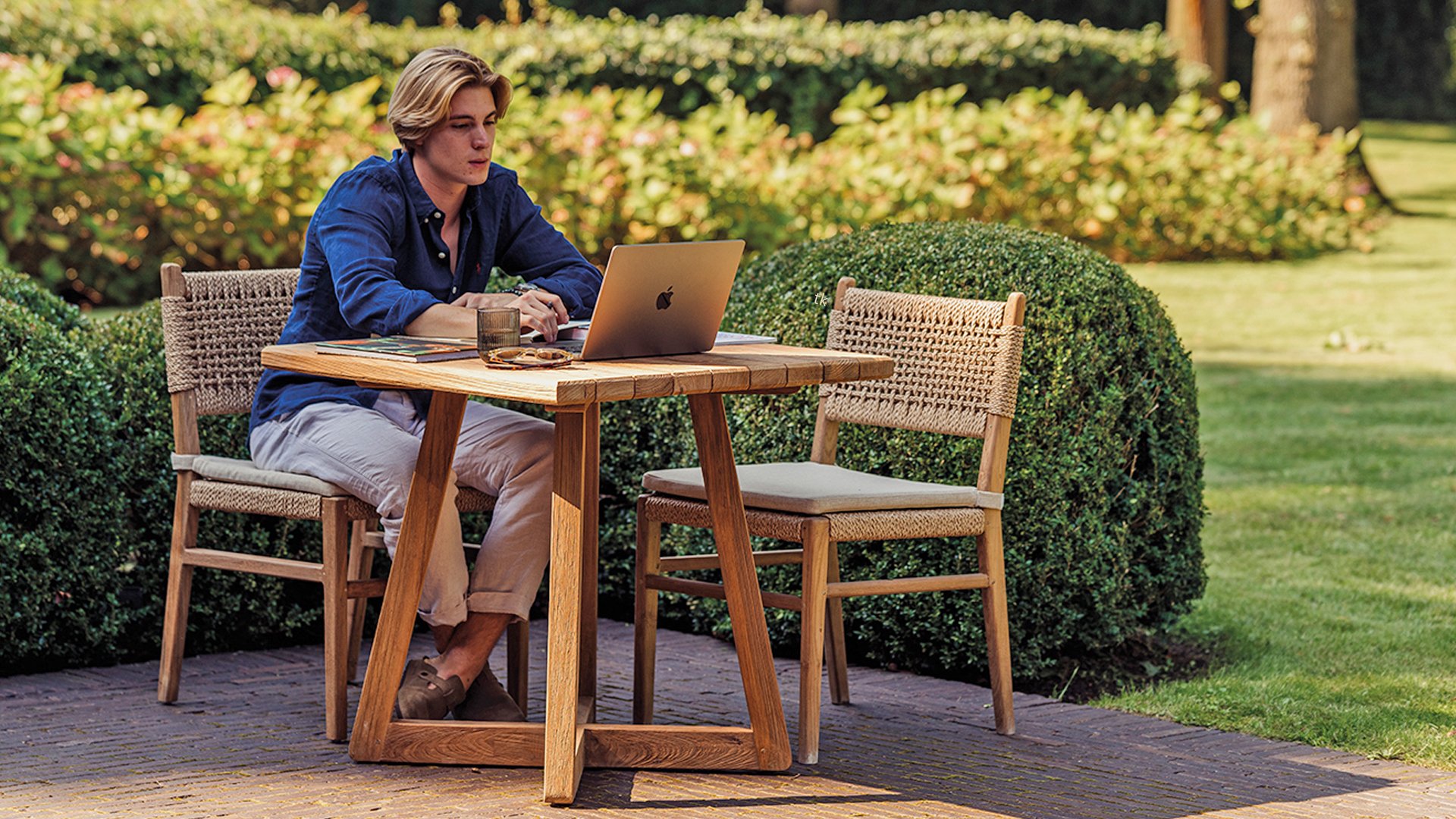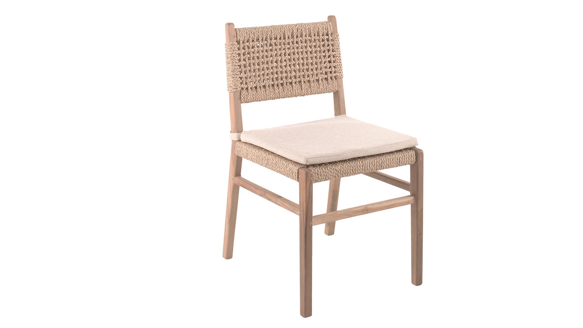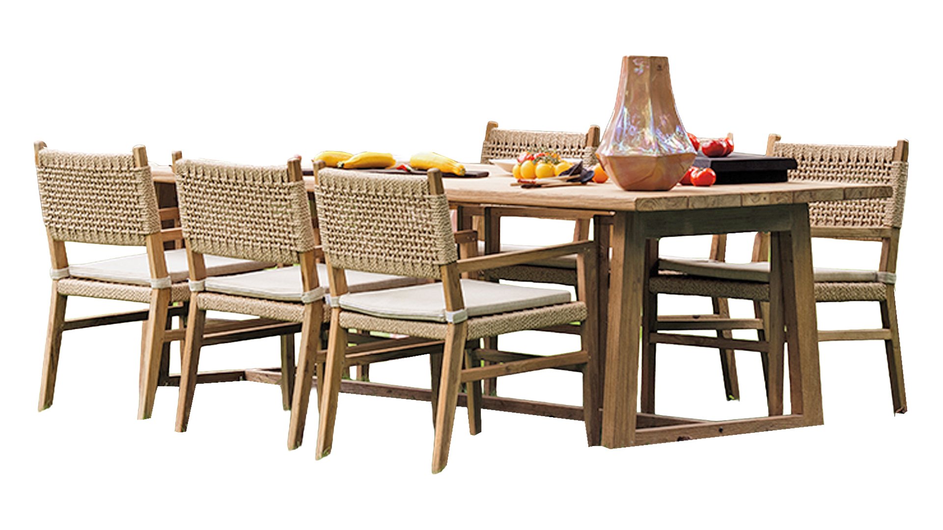 Was den Menorca Gartenstuhl einzigartig macht, ist die Verwendung von recyceltem Teakholz. Jedes Holzstück erzählt seine eigene Geschichte und sorgt für eine lebendige, authentische Ausstrahlung. In Kombination mit dem handgeflochtenen Geflecht entsteht eine natürliche Harmonie voller Wärme und Charakter.