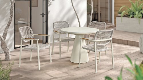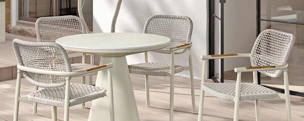 Die Gescova Midleton-Kollektion besteht aus modernen Außenmöbeln der belgischen Marke Gescova, die für die Verwendung langlebiger Materialien und zeitgemäßes Design bekannt ist.