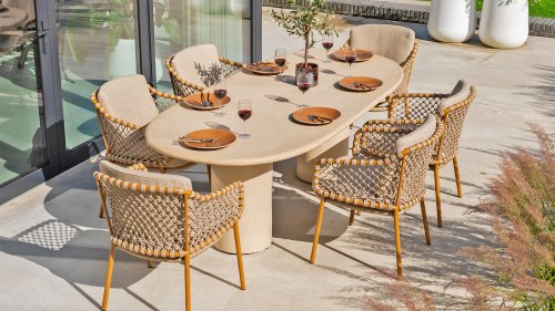 - Hochwertige Materialien: Wetterfeste Kissen, ein robuster Aluminiumrahmen und Rope-Details, die jahrelang schön bleiben.