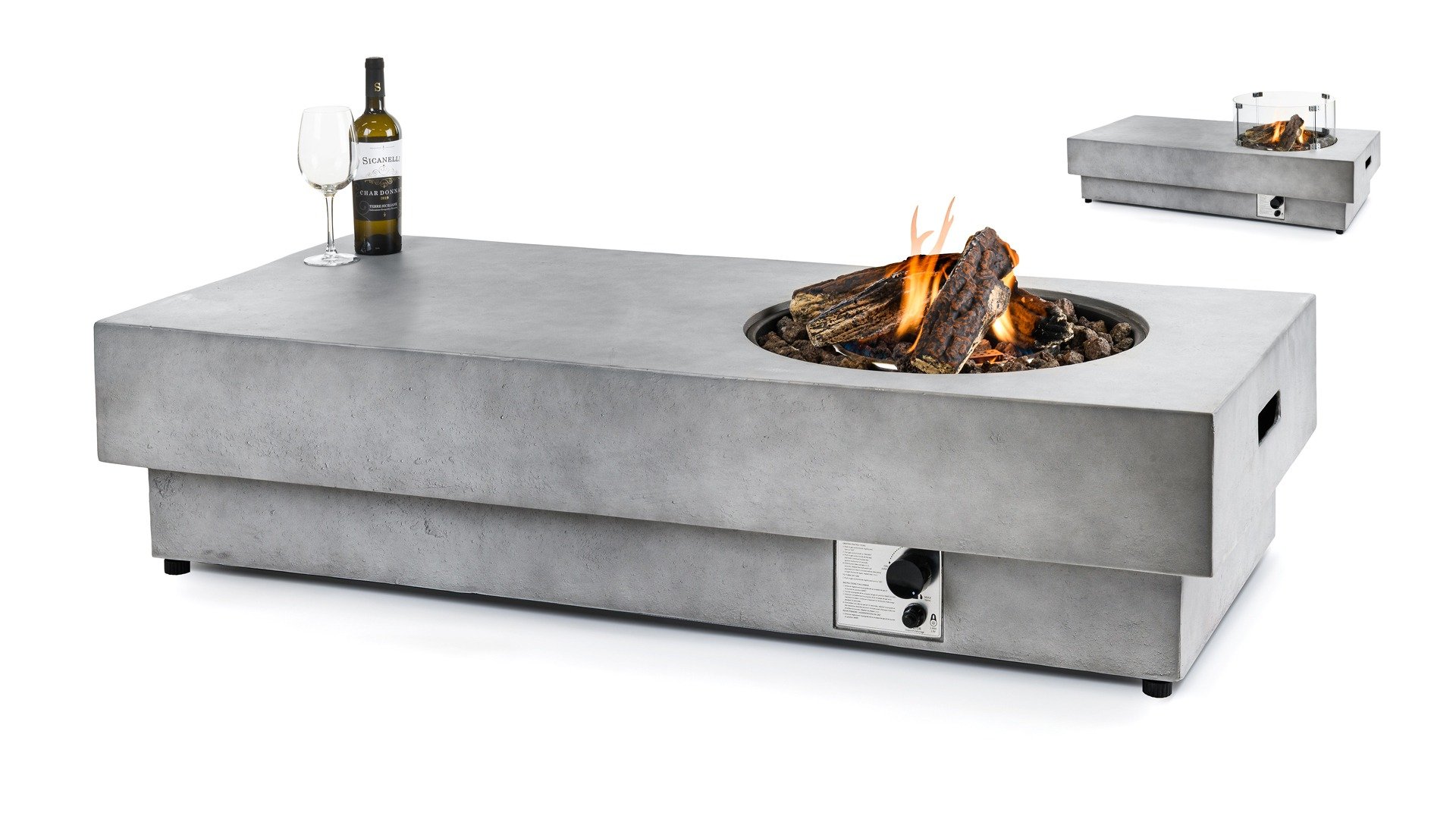 Die gasbetriebenen Feuertische sorgen für eine entspannte Stimmung und verzaubern nicht nur mit dem Feuer sondern geben auch eine wohlige Wärme ab. Durch den wetterbeständigen Verbundstoff (Komposite) bekommen die Feuertische einen edlen Touch und bereiten Ihnen Freude für lange Zeit Die elektrische Zündeinheit und der Flammenregulierer sind für eine einfache Bedienung seitlich in die Feuerstelle eingelassen.
