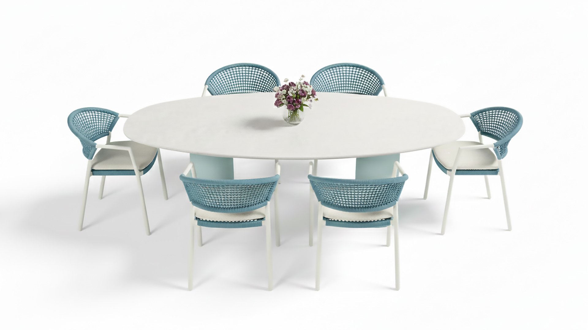 1 x Hartman Malaga Tisch Ellips Alu Blue - Ceramic Marmer White 220cm