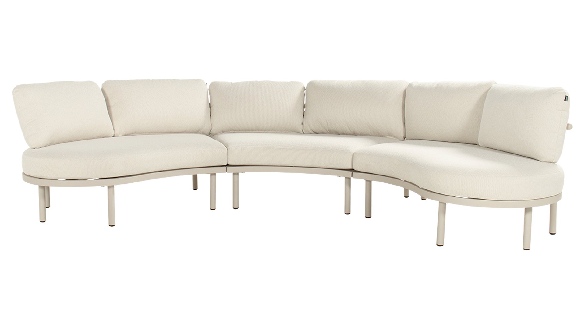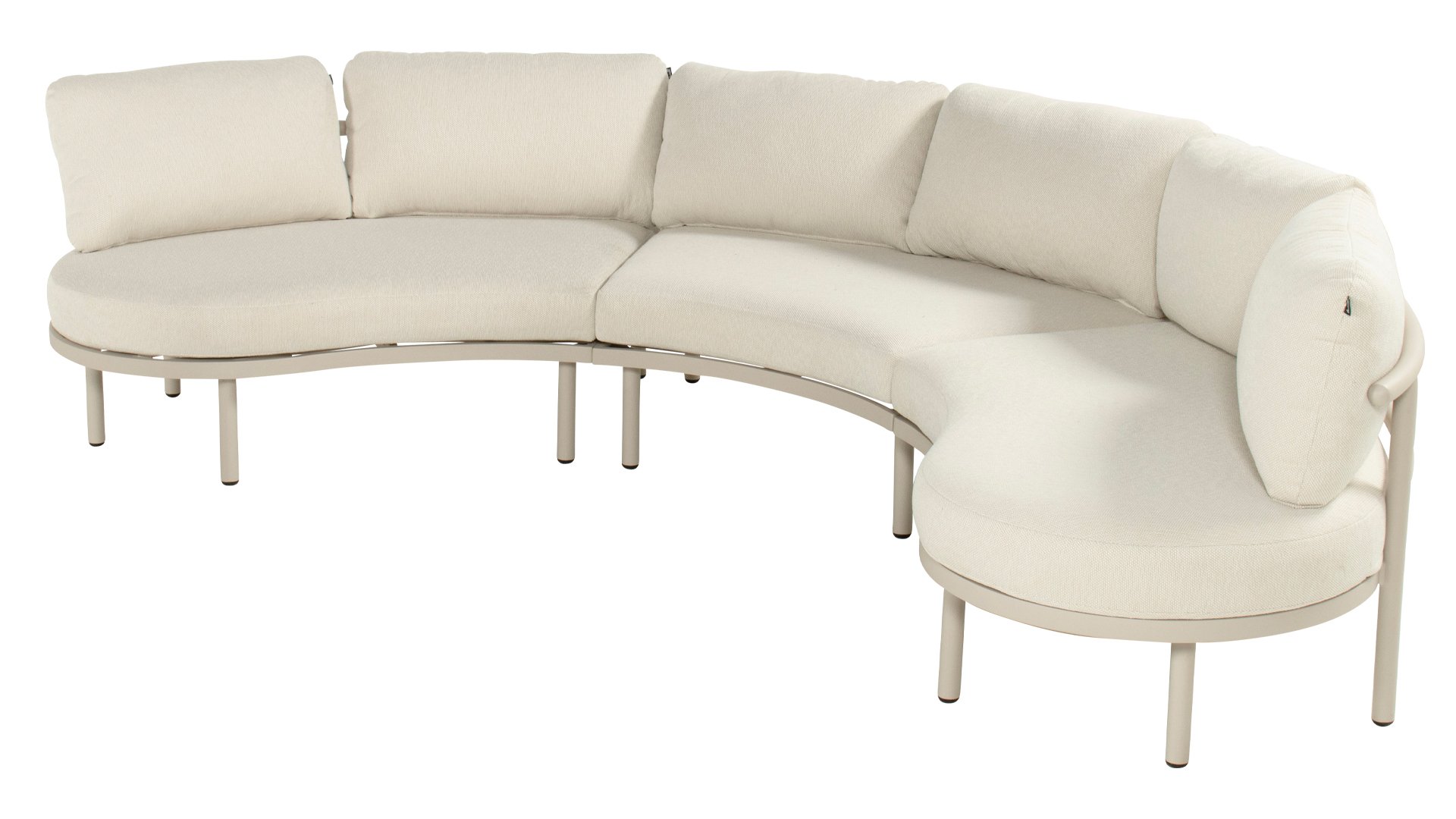 Das Palma runde Loungeset in den Farben Sand, Cappuccino oder Soft Green lädt zum ultimativen Entspannen ein. Der Aluminiumrahmen und die beigen Kissen sind pflegeleicht und wetterbeständig. Die runde Form und der passende Couchtisch sorgen für eine gemütliche, warme Sitzecke.