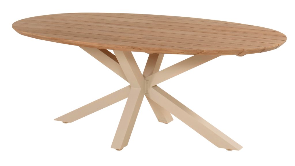 Der Tisch San Sebastian in Cappuccino ist eine stilvolle Wahl mit warmem Ambiente. Die ovale Teakholzplatte bildet einen schönen Kontrast zum Aluminiumgestell und lädt zu stimmungsvollen Abenden im Freien ein. Ergänzen Sie Ihr Ensemble mit bequemen Esszimmerstühlen!
