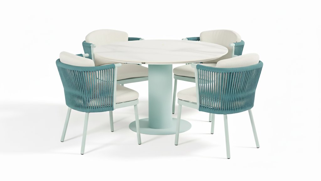 1 x Hartman Girona Tisch Alu Lulu Blue - Keramisch Weiß Marmor Ø120cm
