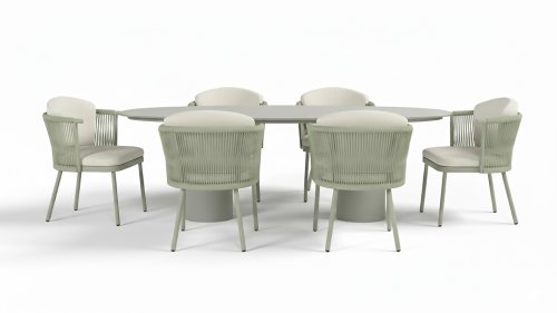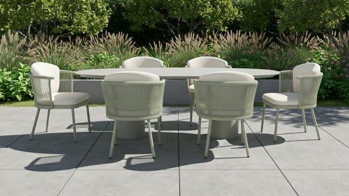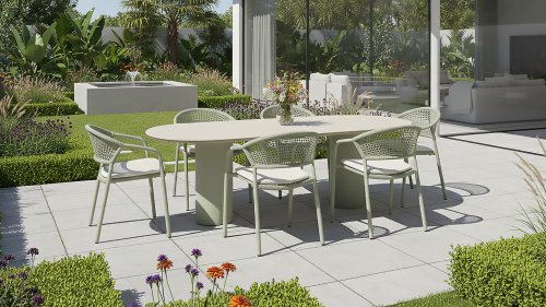 Gefertigt aus hochwertigen, wetterbeständigen Materialien wie Aluminium, Keramik und wasserabweisenden Kissen. Das Hartman Toledo Gartenmöbelset ist robust, wartungsarm und für alle Wetterbedingungen geeignet.