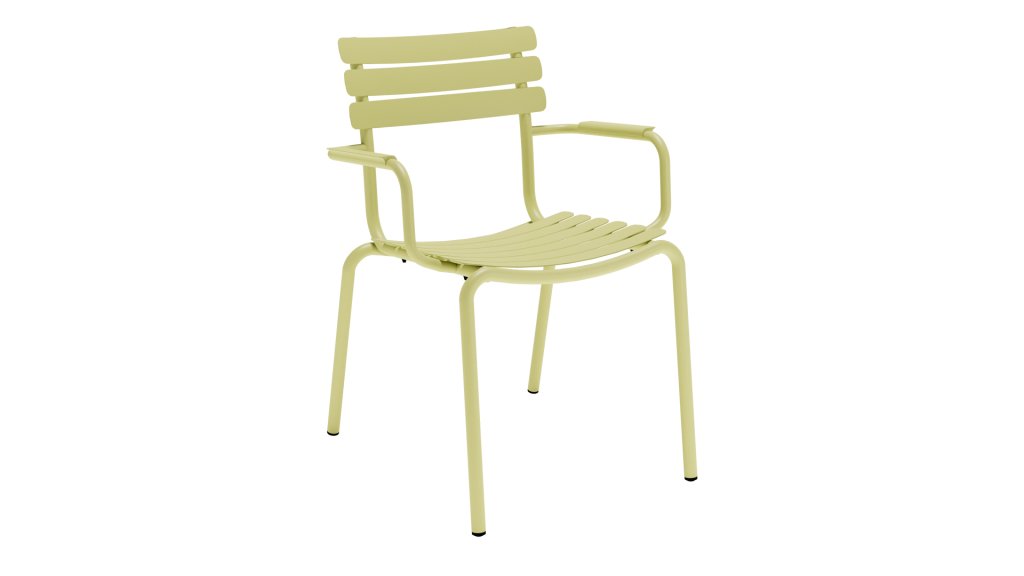 ALUA ist in 6 Farben erhältlich: Muted White / Black / Beige / Cayenne / Ice Blue / Olive Green und bietet die Wahl zwischen Modellen mit oder ohne Armlehnen. Entworfen für einfaches Stapeln, können bis zu 10 Stück gestapelt werden. Die gebogenen Aluminiumleisten sind so geformt, dass sie ein komfortables Sitzerlebnis bieten und dem Stuhl ein weiches und einladendes Erscheinungsbild verleihen.