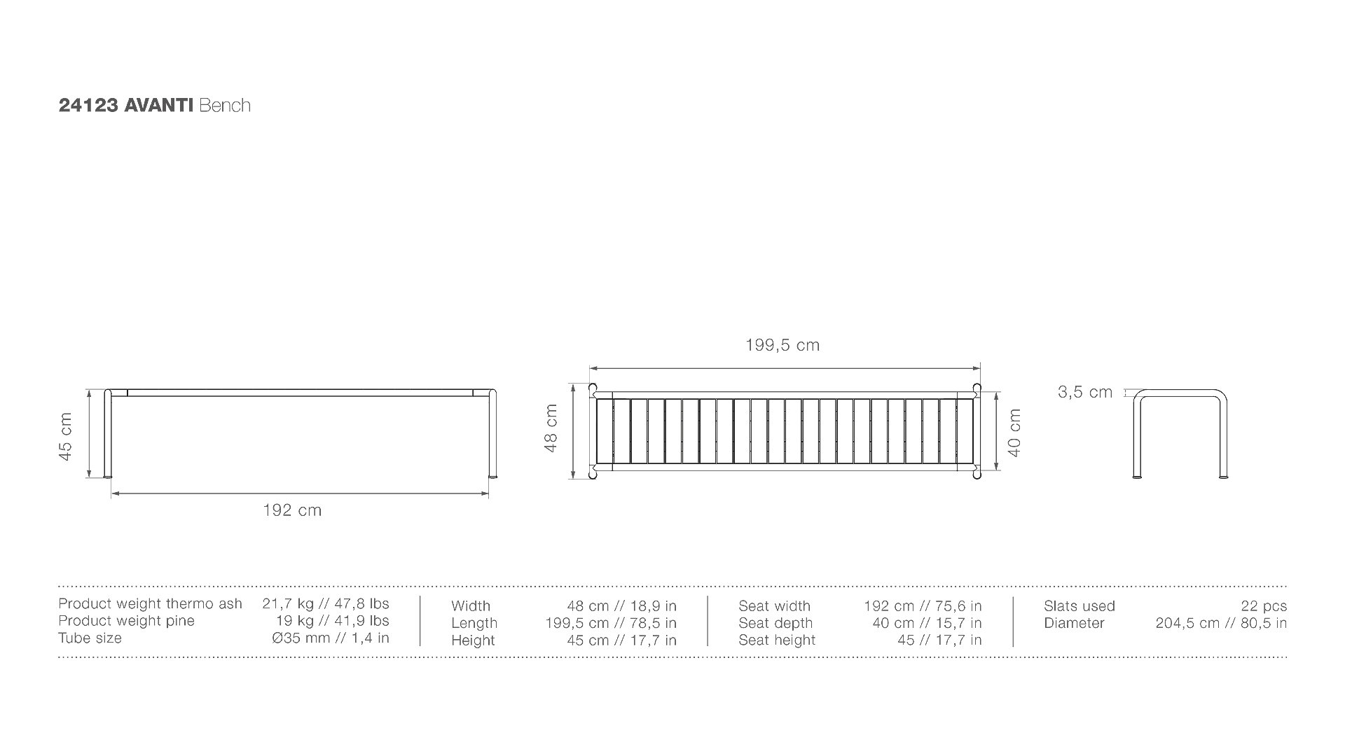 Bemaß: ± 199,5x48x45cm (LxBxH)