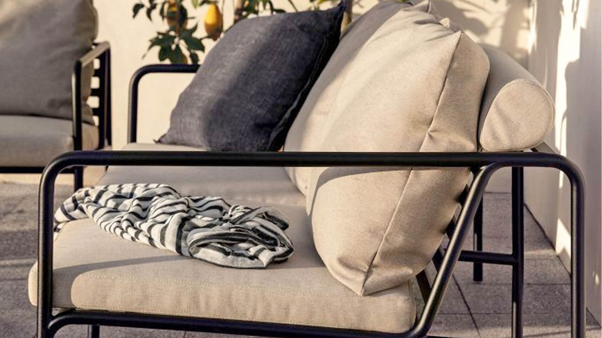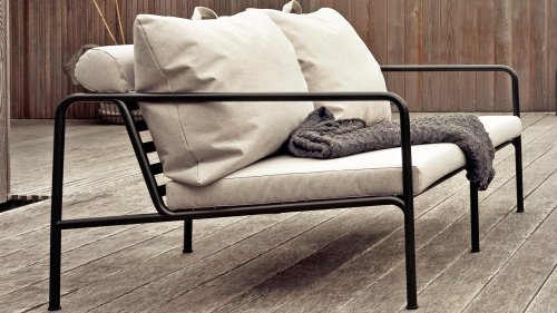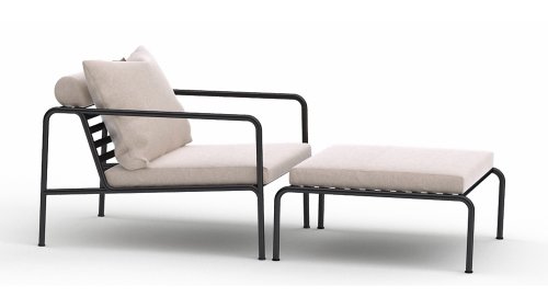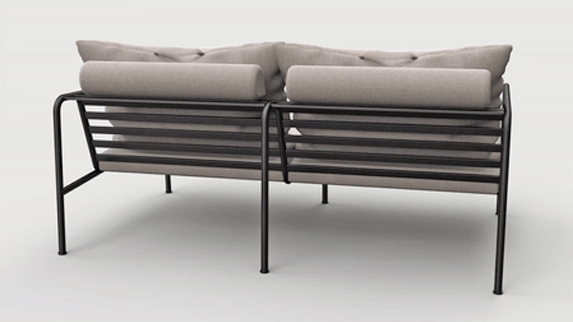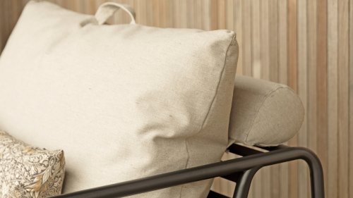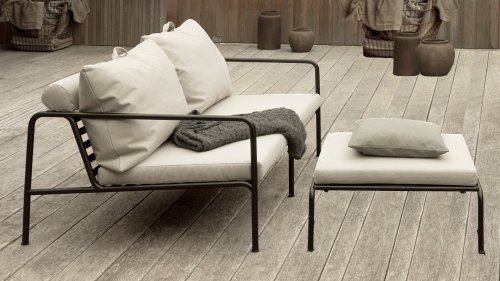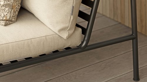 Der wartungsfreie Pulverbeschichteter Rahmen und die Konstruktion der großen weichen Rückenkissen sind genau das - die Einfachheit der Struktur, bei der niedrige Linien dafür sorgen, dass das Design sowohl mit als auch ohne Kissen immer stolz erscheint - Sommer oder Winter. Die Griffe der Kissen sind eine Aussage über die Funktion des Produkts und machen sie bei Bedarf leicht zu greifen und aufzubewahren.