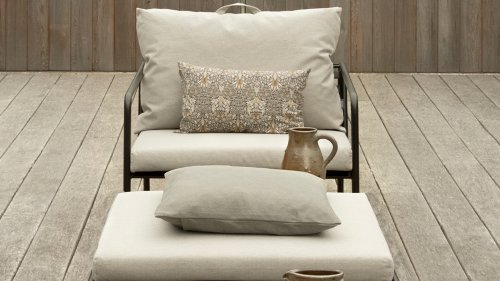 Die Heritage Kissen sind aus Sunbrella Heritage-Material, das zu 50% aus recyceltem Acryl besteht.