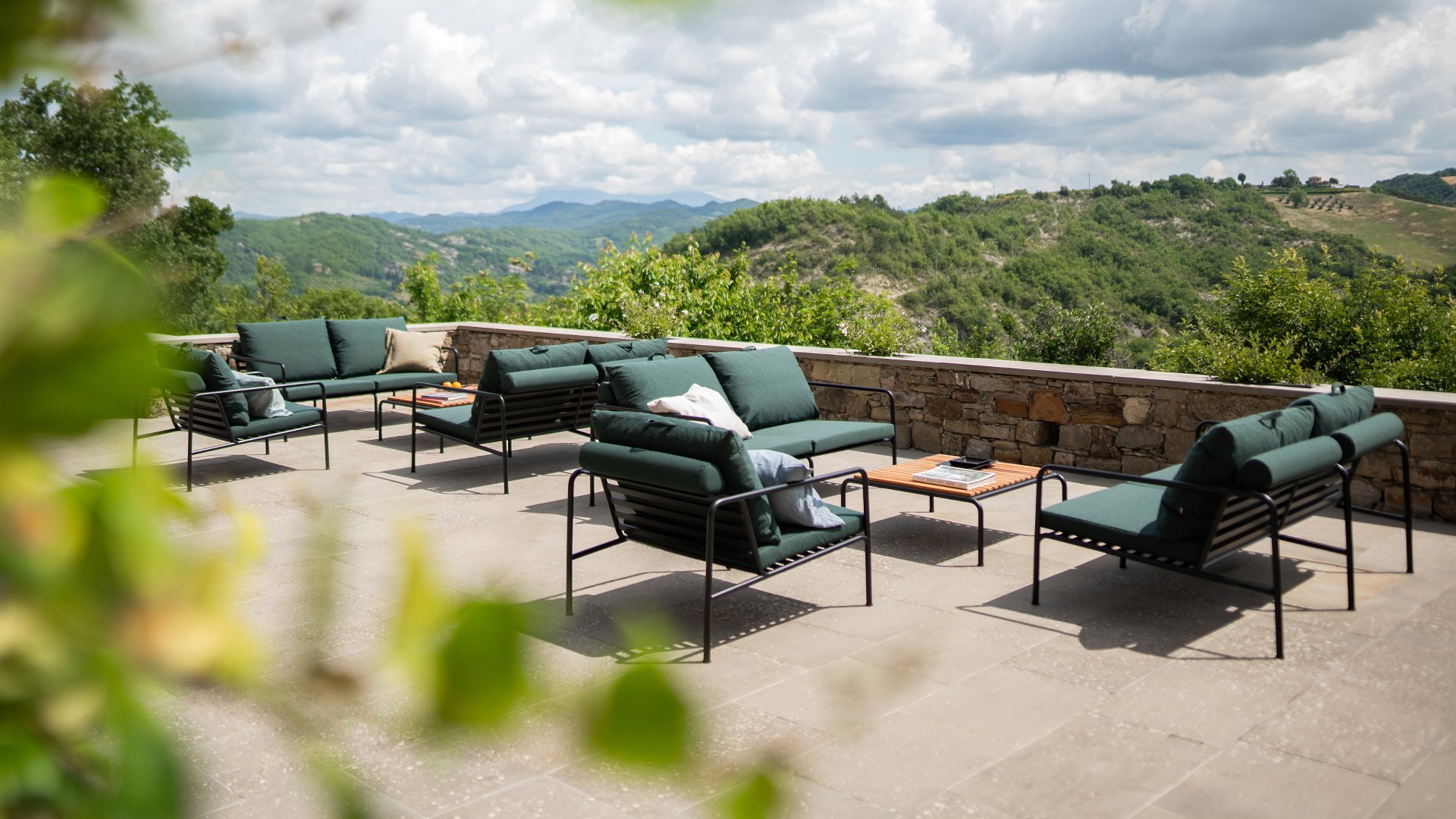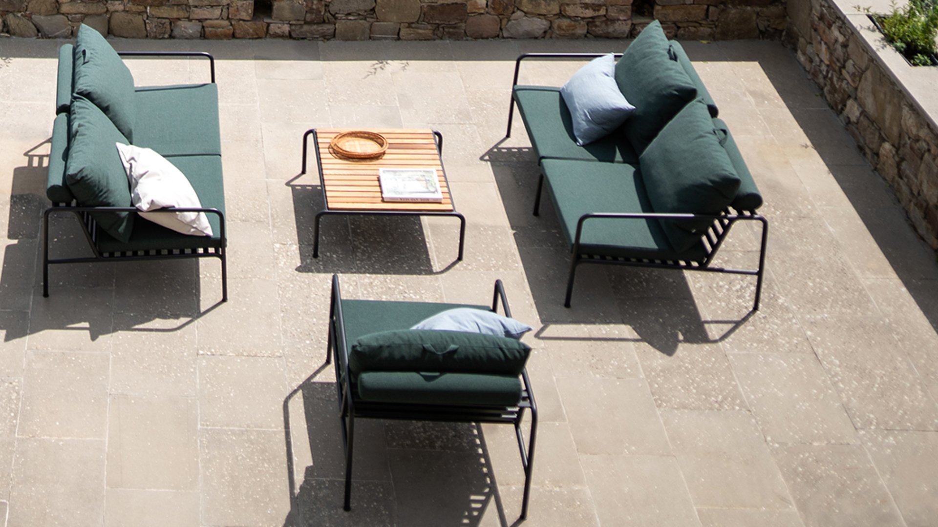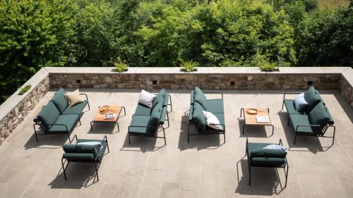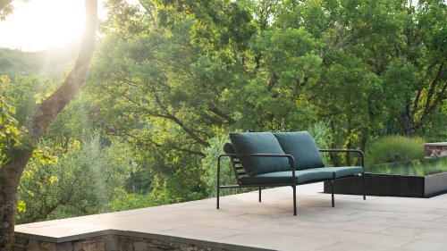Der wartungsfreie Pulverbeschichteter Rahmen und die Konstruktion der großen weichen Rückenkissen sind genau das - die Einfachheit der Struktur, bei der niedrige Linien dafür sorgen, dass das Design sowohl mit als auch ohne Kissen immer stolz erscheint - Sommer oder Winter. Die Griffe der Kissen sind eine Aussage über die Funktion des Produkts und machen sie bei Bedarf leicht zu greifen und aufzubewahren.