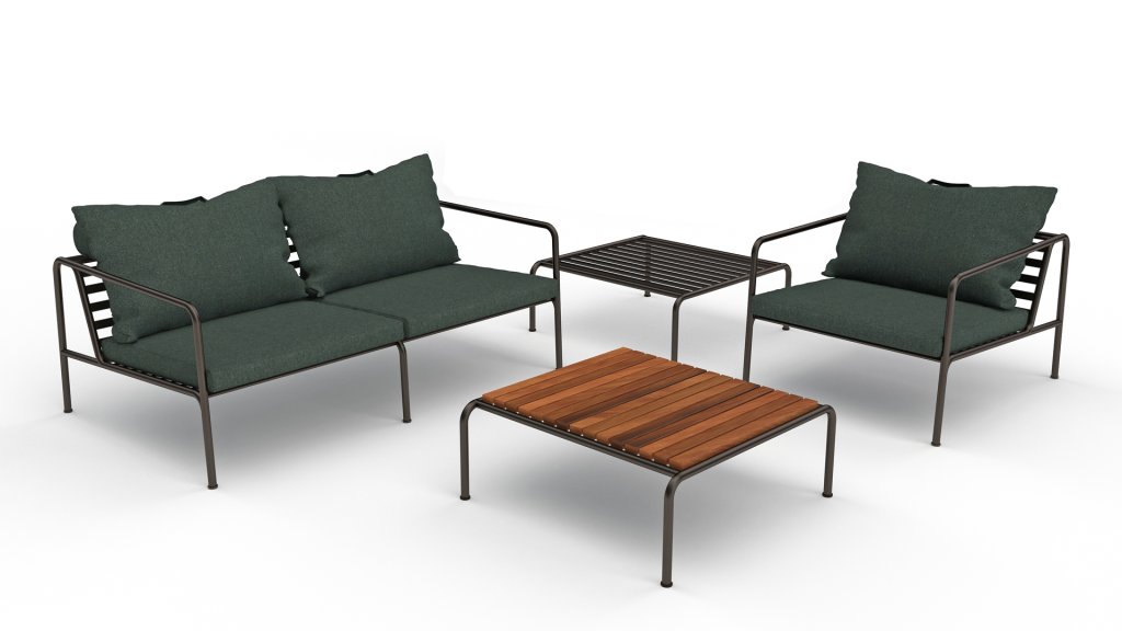 Die HOUE AVON-Kollektion wurde aus dem Wunsch heraus entworfen, etwas mit einem sehr leichten Erscheinungsbild und einem niedrigen, schlanken Profil zu schaffen, während ein hohes Maß an Komfort beibehalten wird. Der wartungsfreie Rahmen und die Konstruktion der großen weichen Rückenkissen ist genau das: die Einfachheit der Struktur, bei der niedrige Linien dafür sorgen, dass das Design immer stolz aussieht, ob mit oder ohne Kissen - Sommer oder Winter. Die Griffe der Kissen sind ein Statement für die Funktion des Produkts und machen sie bei Bedarf leicht zu greifen und zu verstauen.