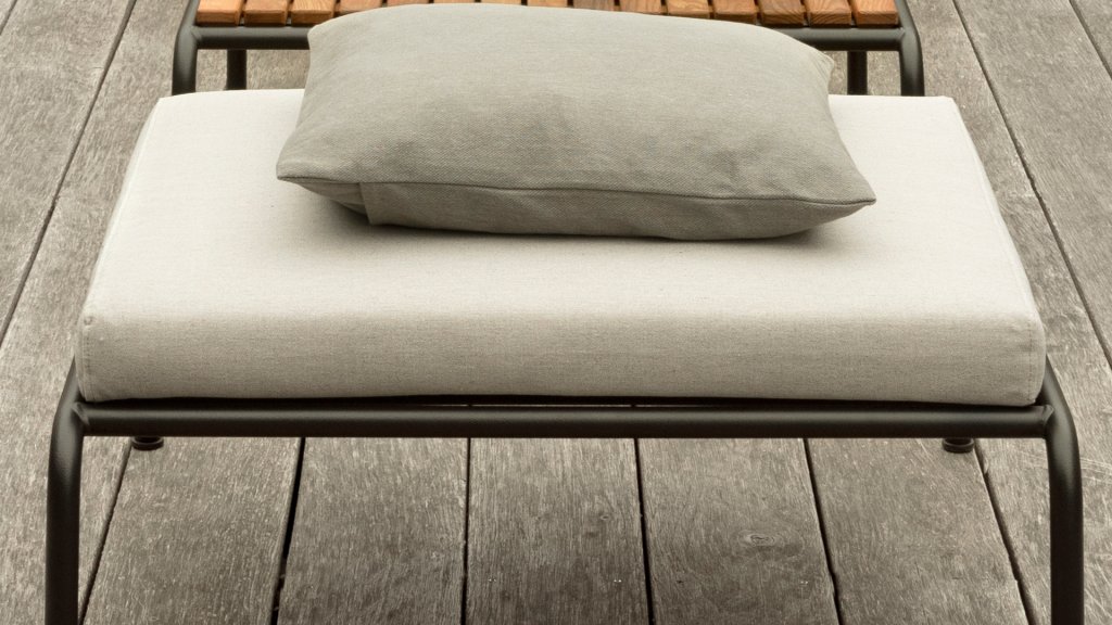 Wasser fließt direkt durch den speziellen Schaum hindurch, während ein weiteres Material, Dacron, dafür sorgt, dass die Kissen ihre originale Form behalten. Die Polster sind ausziehbar und waschbar. Die Kissen HOUE AVON bestehen aus Sunbrella Heritage-Stoff, der zu 50 % aus recyceltem Acryl besteht. Bunte Faserenden aus dem Prozess der Wiederverwendung des Primärmaterials können im Gewebe erscheinen und die Stofffarbe von einer Charge zur anderen variieren. So entsteht ein einzigartiger Stoff mit natürlichem Look und Vintage-Charme. Der Stoff ist Oeko-Tex-zertifiziert, wasserabweisend, schmutzabweisend und pflegeleicht.