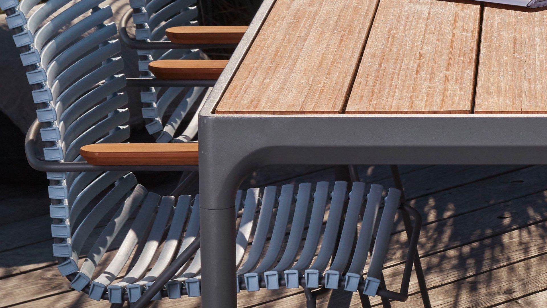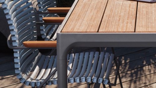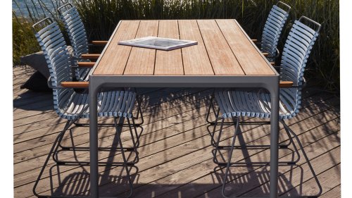 Der Four Tisch von Houe ist ein robustes Modell, das gut in ein industrielles Interieur oder ein cooles Interieur passt. Der Tisch ist so konzipiert, dass er Wind und Wetter standhält. Der Tisch Four hat einen stabilen Aluminiumrahmen, der in grau oder schwarz pulverbeschichtet erhältlich ist. Die Bambus-Tischplatte hat eine Struktur, die sich sehr gut für den Außenbereich eignet. Der Tisch kommt in den Maßen mit einer Länge von 90, 160, 210 und 270 cm und hat alle eine Breite von 90 cm und eine Höhe von 74 cm (Stehtisch 111 cm hoch). Bambus ist eine nachhaltigere Alternative zu Teak. Wir empfehlen, den Bambus 2-3 mal im Jahr zu ölen, dann behält der Tisch länger seine warmen Farben.