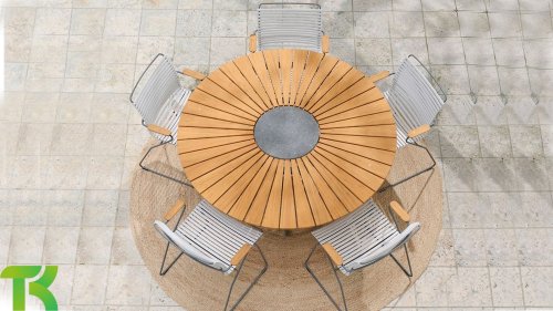 Der Houe Circle ist ein runder Gartentisch mit einer schönen Platte aus gemischtem Bambus. Den Kreis gibt es in 2 Größen, nämlich 150cm und 110cm. Das Schöne an diesem runden Tisch ist, dass er viel Platz bietet. In der Mitte des Kreistisches befindet sich ein zusammengesetzter Stein. Dies ist nützlich, wenn Sie Ihre heißen Pfannen usw. Das skandinavische Design in Kombination mit dem nachhaltigen Bambus sorgt dafür, dass dieser Tisch in jedem Garten gut zur Geltung kommt. Bambus ist eine schnell wachsende Pflanze und daher wesentlich nachhaltiger als Teak. Wir empfehlen den Tisch 2-3 mal im Jahr zu ölen. Wenn der Tisch gut gepflegt wird, hält er sehr lange und behält seine schönen Farben.