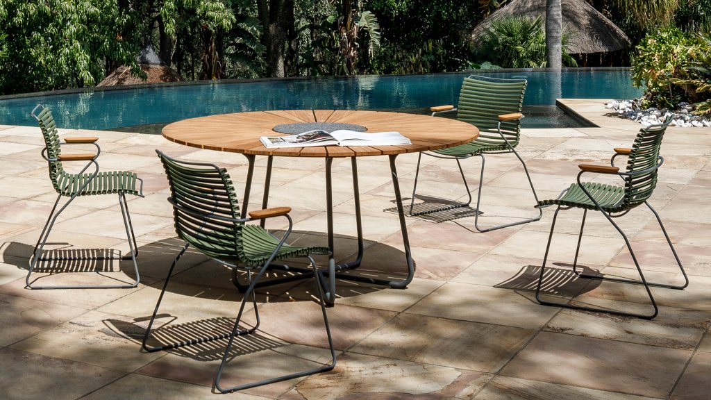 Der Houe Circle ist ein runder Gartentisch mit einer schönen Platte aus gemischtem Bambus. Den Kreis gibt es in 2 Größen, nämlich 150cm und 110cm. Das Schöne an diesem runden Tisch ist, dass er viel Platz bietet. In der Mitte des Kreistisches befindet sich ein zusammengesetzter Stein. Dies ist nützlich, wenn Sie Ihre heißen Pfannen usw. Das skandinavische Design in Kombination mit dem nachhaltigen Bambus sorgt dafür, dass dieser Tisch in jedem Garten gut zur Geltung kommt. Bambus ist eine schnell wachsende Pflanze und daher wesentlich nachhaltiger als Teak. Wir empfehlen den Tisch 2-3 mal im Jahr zu ölen. Wenn der Tisch gut gepflegt wird, hält er sehr lange und behält seine schönen Farben.