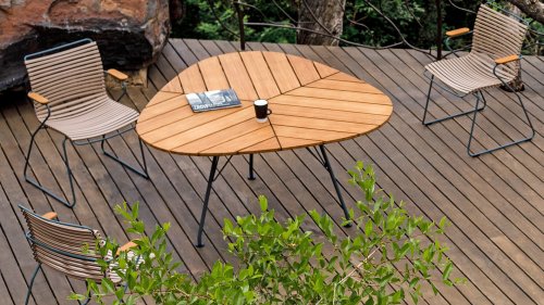 Dieser einzigartige Tisch von Houe hat seinen Namen nicht gestohlen, die Ähnlichkeit mit einem Blatt ist frappierend... Durch die dreieckige Form und die Platzierung des Fußes können bis zu 9 Personen im Leaf speisen. Der von Henrik Pedersen entworfene Tisch Leaf besteht aus grau pulverbeschichtetem Metall mit einer Tischplatte aus Bambuslatten. Bambus ist eine schnell wachsende Pflanze. Vorausgesetzt, es wird richtig gepflegt, ist es ein haltbareres Material als Teak. Wir empfehlen Bambus 2-3 mal im Jahr zu ölen, dann hält der Tisch sehr lange und behält seine warmen Farben.