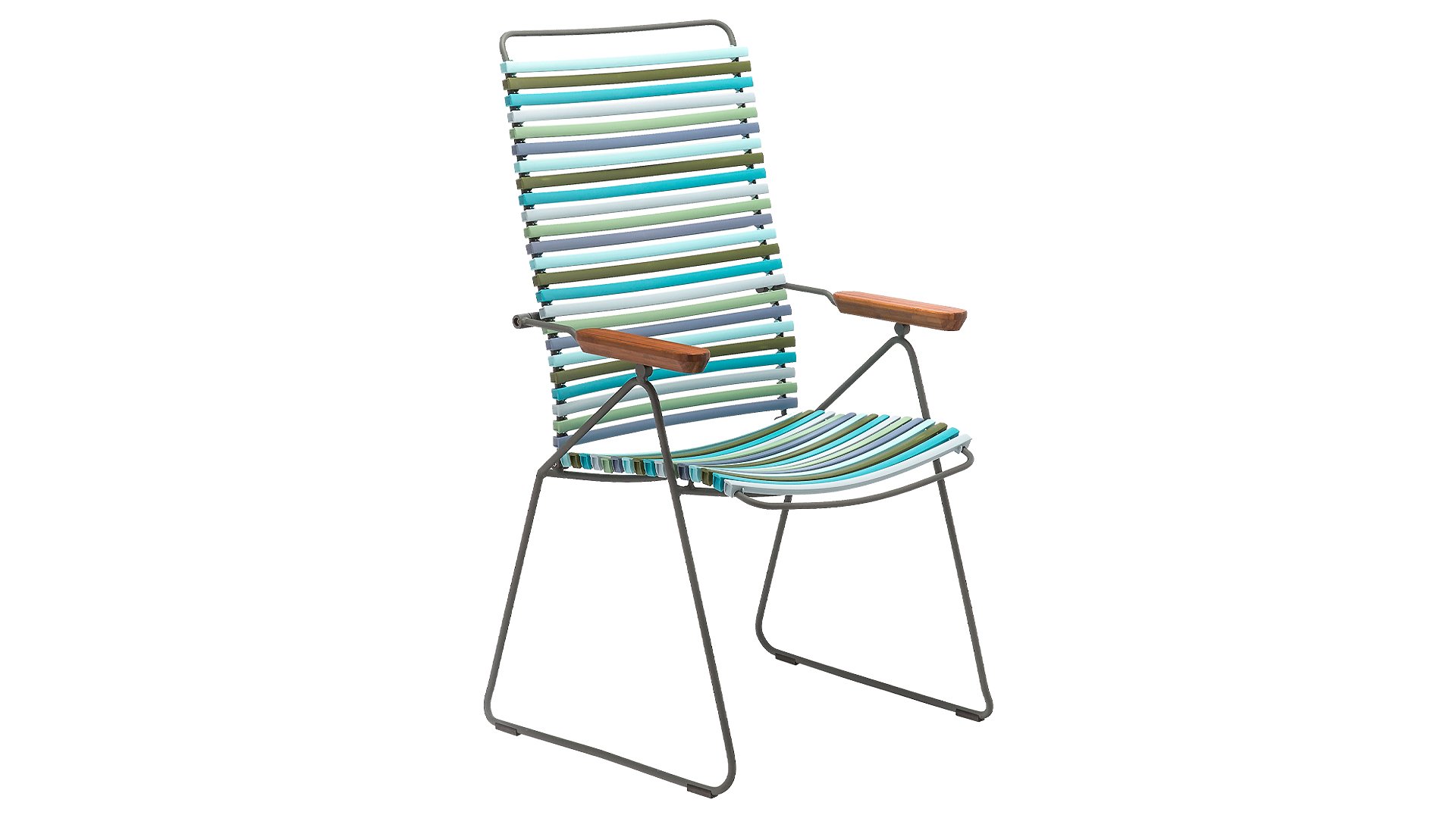 Der verstellbare Click-Gartenstuhl für mehr Komfort! HOUE CLICK Verstellbarer Gartenstuhl ist einfach, ehrlich und ergonomisch durchdacht. Dieser Gartenstuhl hat eine hohe Rückenlehne, die Ihren Rücken ausreichend unterstützt, und die Rückenlehne ist auch verstellbar, was den Stuhl sehr komfortabel zu verwenden macht, auch ohne Kissen.