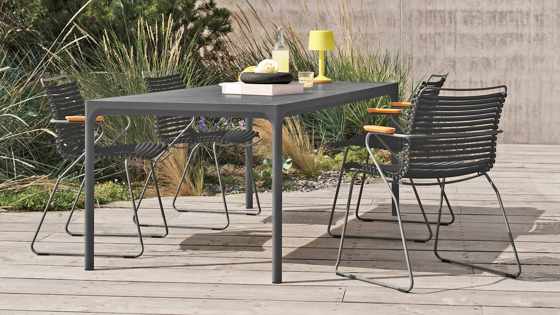 Lernen Sie Houe Four Ceramics kennen: eine Tischserie, die industrielles Minimalismus und höchsten Bedienkomfort perfekt vereint. Erhältlich in drei Größen – 90 x 90 cm, 160 x 90 cm und 210 x 90 cm – bietet sie für jeden Außenbereich das passende Modell. Das elegante Design wird von einem robusten, pulverbeschichteten Aluminiumrahmen getragen, während die edle Keramiktischplatte nicht nur luxuriös wirkt, sondern auch kratzfest ist.