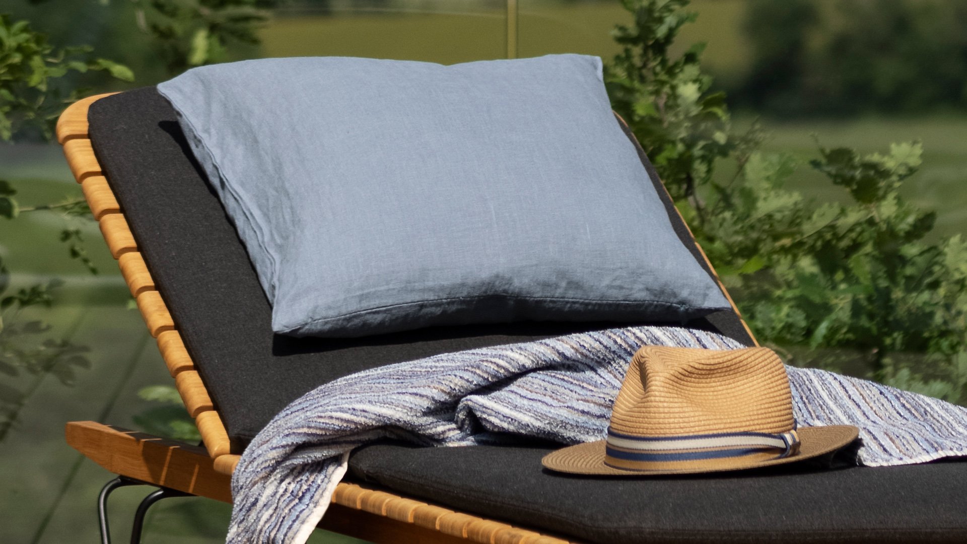 Wasser fließt direkt durch den speziellen Schaum hindurch, während ein weiteres Material, Dacron, dafür sorgt, dass die Kissen ihre originale Form behalten. Die Polster sind ausziehbar und waschbar. Die Kissen in der Lounge sind mit einem speziellen Outdoor-Stoff mit einer Basis aus Quickdry-Schaum versehen. Dadurch sind die Kissen in kürzester Zeit wieder trocken und es bildet sich kein Schimmel. Die Stoffe sind leicht mit einem milden Reinigungsmittel zu reinigen. Die Kissen sind abnehmbar und bei 30 Grad waschbar.Die Kissen in Alpengrün und Esche in Hellgrau / Ecru-Farbe bestehen aus Sunbrella Heritage-Material, das zu 50% aus recyceltem Acryl besteht. Bunte Faserenden aus dem Recycling des Primärmaterials können im Stoff auftreten und die Stofffarbe von Charge zu Charge variieren. Dadurch entsteht ein einzigartiger Stoff mit natürlichem Aussehen und Vintage-Charme. Der Stoff ist Oeko-tex-zertifiziert, wasserabweisend, schmutzabweisend und wartungsfreundlich.