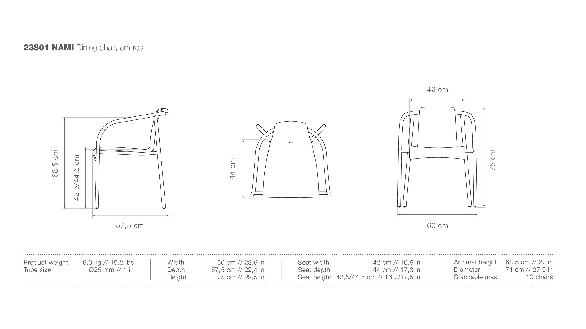 Armhöhe ± 68,5cm