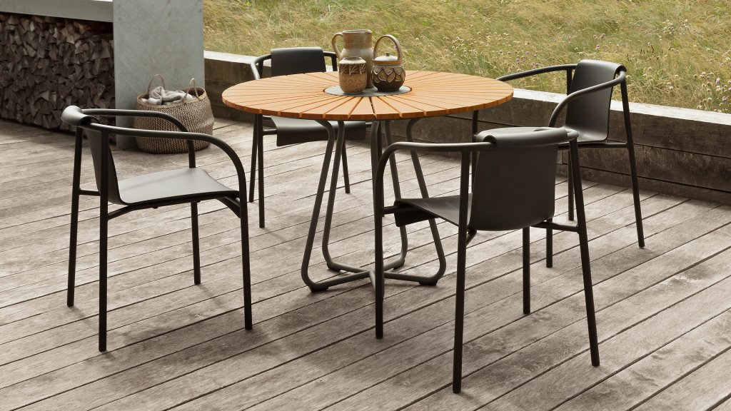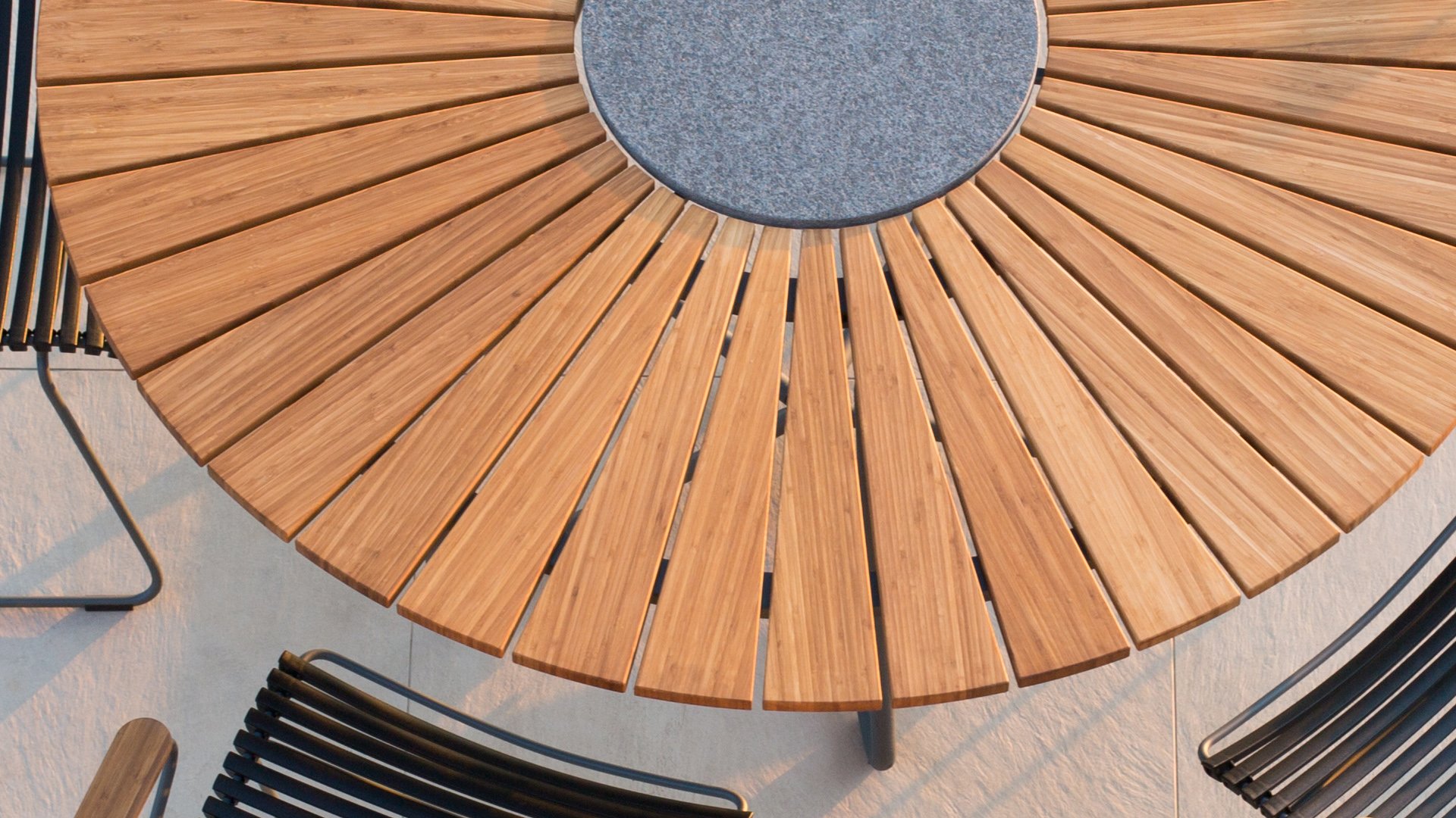 Der Houe Circle ist ein runder Gartentisch mit einer schönen Platte aus gemischtem Bambus. Den Kreis gibt es in 2 Größen, nämlich 150cm und 110cm. Das Schöne an diesem runden Tisch ist, dass er viel Platz bietet. In der Mitte des Kreistisches befindet sich ein zusammengesetzter Stein. Dies ist nützlich, wenn Sie Ihre heißen Pfannen usw. Das skandinavische Design in Kombination mit dem nachhaltigen Bambus sorgt dafür, dass dieser Tisch in jedem Garten gut zur Geltung kommt. Bambus ist eine schnell wachsende Pflanze und daher wesentlich nachhaltiger als Teak. Wir empfehlen den Tisch 2-3 mal im Jahr zu ölen. Wenn der Tisch gut gepflegt wird, hält er sehr lange und behält seine schönen Farben.