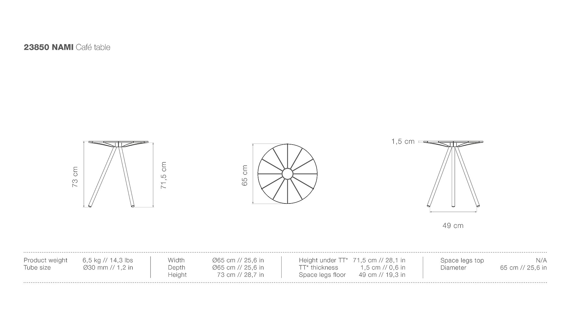 Der NAMI-Tisch besteht aus einem pulverbeschichteten Stahlrahmen mit einer wunderschön gestalteten Kunststoffplatte. Die Tischplatte wird in Dänemark hergestellt und besteht zu 97% aus dänischem Haushaltsplastikmüll und zu 3% aus Farbpigmenten. Der NAMI-Tisch ist in 2 Farben erhältlich: in Schwarz und Grün, mit Rahmen und Schale in derselben Farbe.