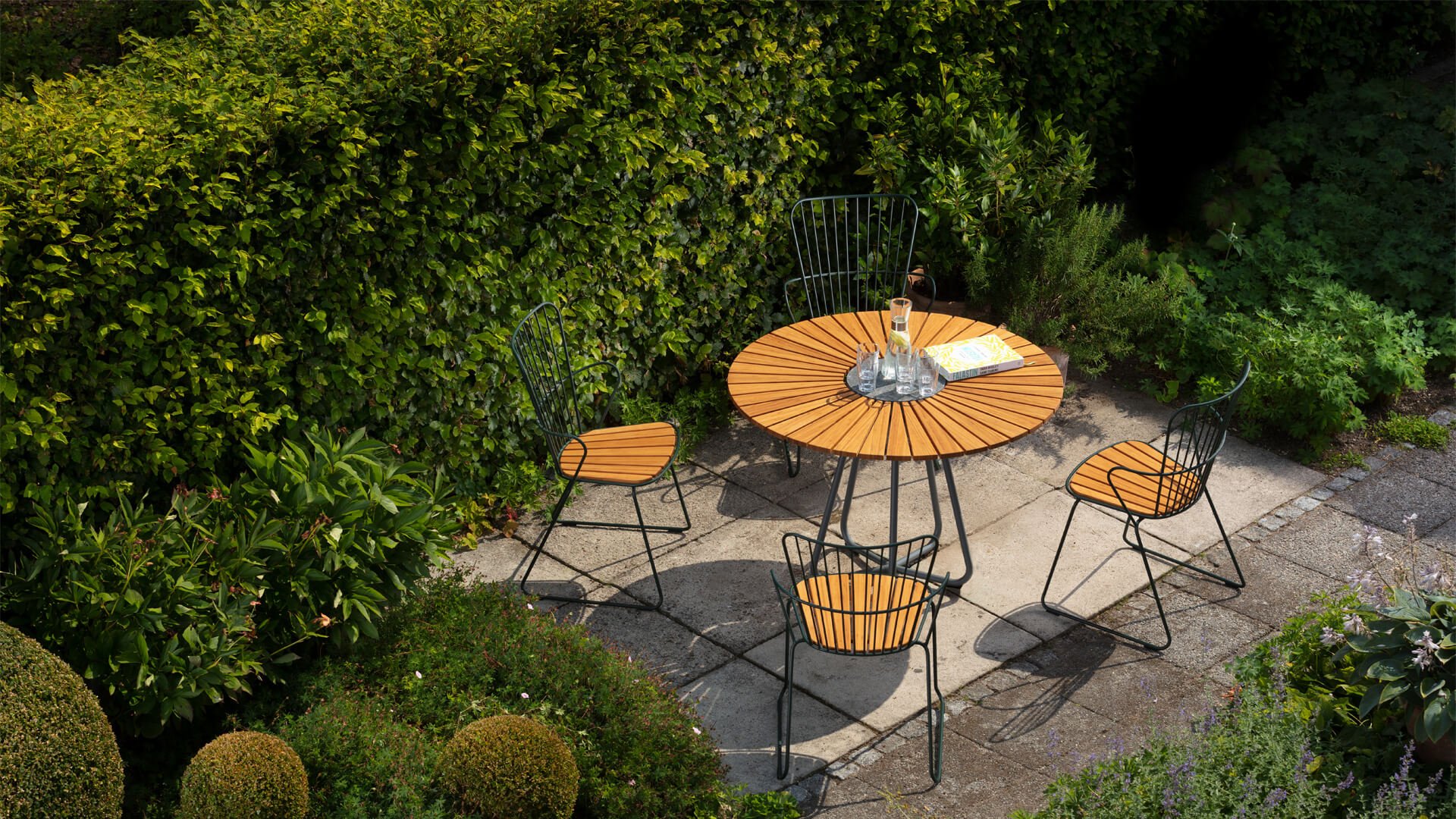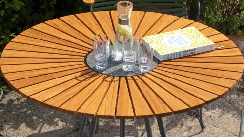 Der Houe Circle ist ein runder Gartentisch mit einer schönen Platte aus gemischtem Bambus. Den Kreis gibt es in 2 Größen, nämlich 150cm und 110cm. Das Schöne an diesem runden Tisch ist, dass er viel Platz bietet. In der Mitte des Kreistisches befindet sich ein zusammengesetzter Stein. Dies ist nützlich, wenn Sie Ihre heißen Pfannen usw. Das skandinavische Design in Kombination mit dem nachhaltigen Bambus sorgt dafür, dass dieser Tisch in jedem Garten gut zur Geltung kommt. Bambus ist eine schnell wachsende Pflanze und daher wesentlich nachhaltiger als Teak. Wir empfehlen den Tisch 2-3 mal im Jahr zu ölen. Wenn der Tisch gut gepflegt wird, hält er sehr lange und behält seine schönen Farben.