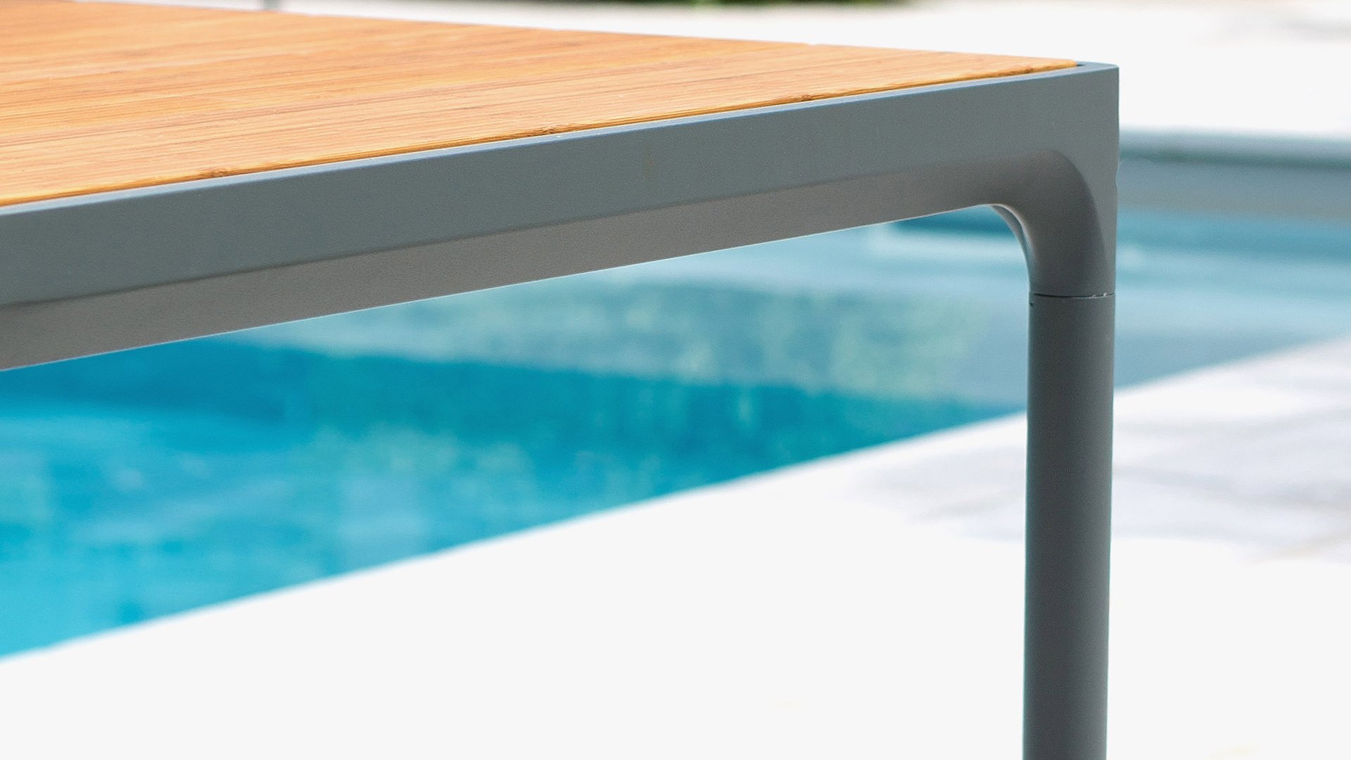 Aluminium ist sehr wartungsfreundlich und leicht. Diese praktischen Möbel sind leicht zu reinigen. Unser Aluminium mit einer festen Pulverbeschichtung ist witterungsbeständig und UV-beständig. Aluminium ist nicht rostanfällig, zeitlos und stilvoll.