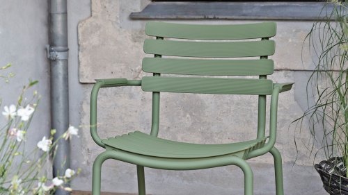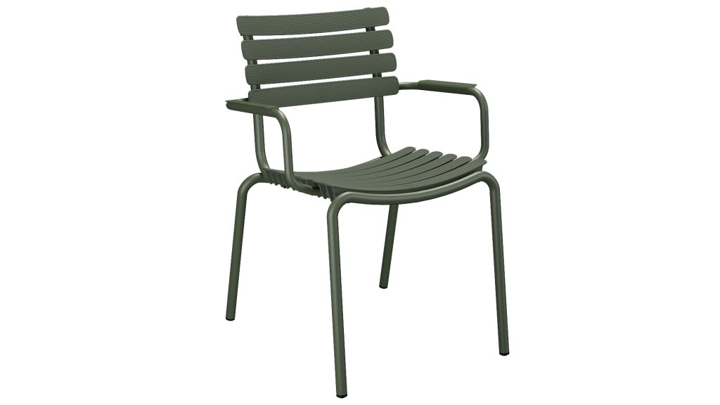 HOUE ReClips Dining collectie: Leichtgewichtiges Design mit minimalistischem Design. Hergestellt aus vollständig recyceltem Kunststoff! Der Gartenstuhl wurde von Henrik Pedersen entworfen, einem dänischen Designer, den wir bereits von dem ikonischen Click! kennen. Erhältlich in 4 Farben, mit Bambus- oder Aluminium-Armlehne.