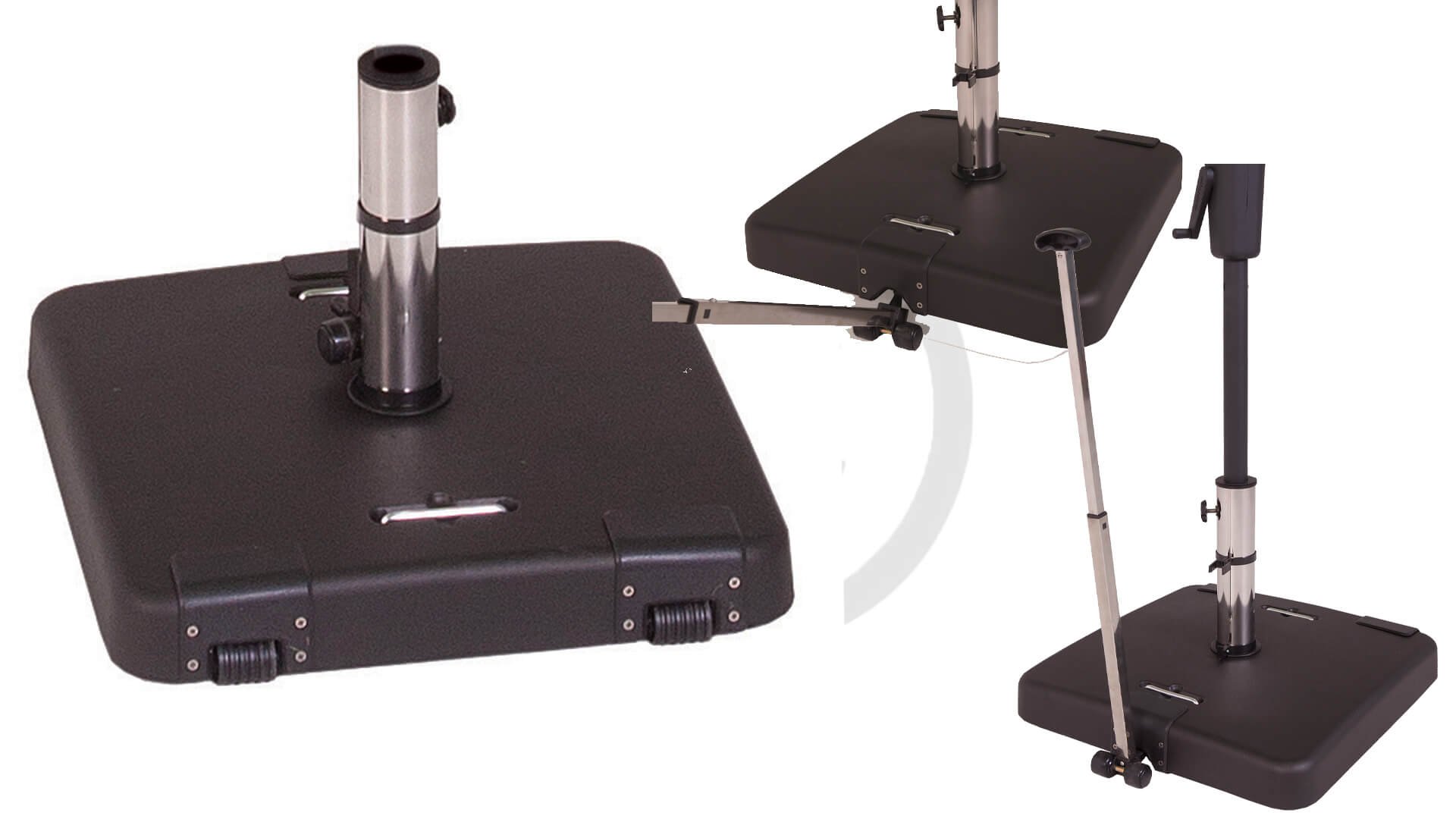 Zware betonvoet voor stokparasols. Geschikt voor verschillende paaldiktes.