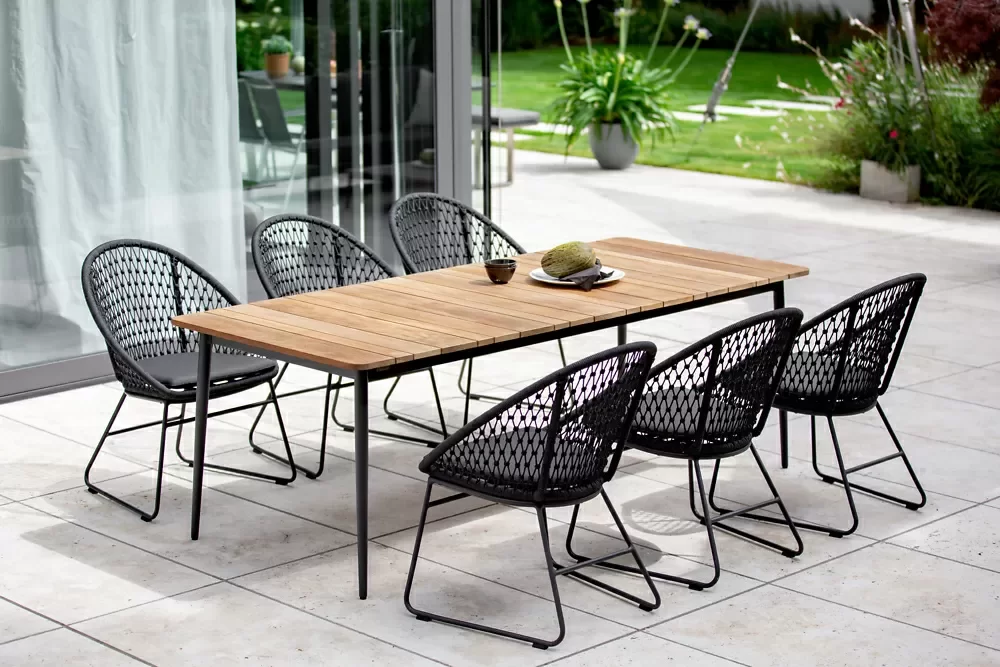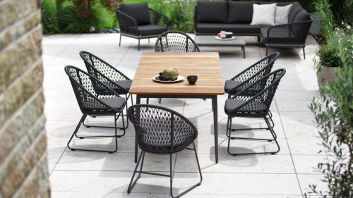 Tolles Design, hochwertige Materialien und höchste Bequemlichkeit. Der Kuta serie der Marke Niehoff ist ein ganz besonderes Schmuckstück. Das Kufengestell aus Aluminium und die Kordelflechtung in Rautenoptik ergänzen sich hervorragend. Die runde Sitzschale mit dem hohen Rücken und der etwas niedrigeren Sitzhöhe machen den Loungesessel zum bequemen Outdoor-Partner für Ihren Loungebereich. Das im Lieferumfang enthaltene, farblich passende Sitzkissen rundet den Komfort ab.