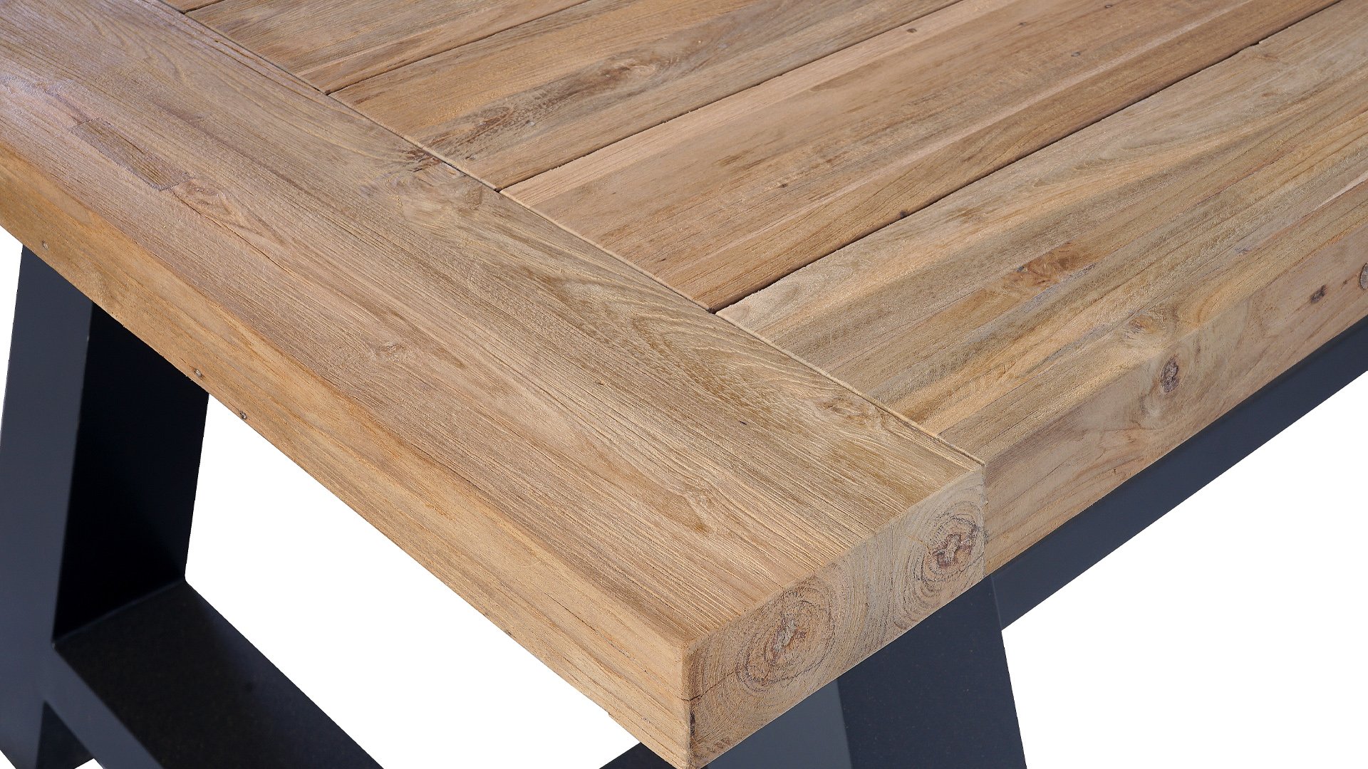 Der SenS Belfast-Tisch ist ein robustter Teakholztisch für den Außenbereich. Die Platte besteht aus recyceltem Teakholz und der Rahmen ist aus pulverbeschichtetem Aluminium. Bitte beachten Sie, dass jedes Teakholz unter dem Einfluss des Wetters arbeitet. Da die Platte aus recyceltem Teakholz besteht, hat der Tisch einen nachhaltigen Charakter. Unregelmäßigkeiten und Unvollkommenheiten sind charakteristisch für dieses Produkt.