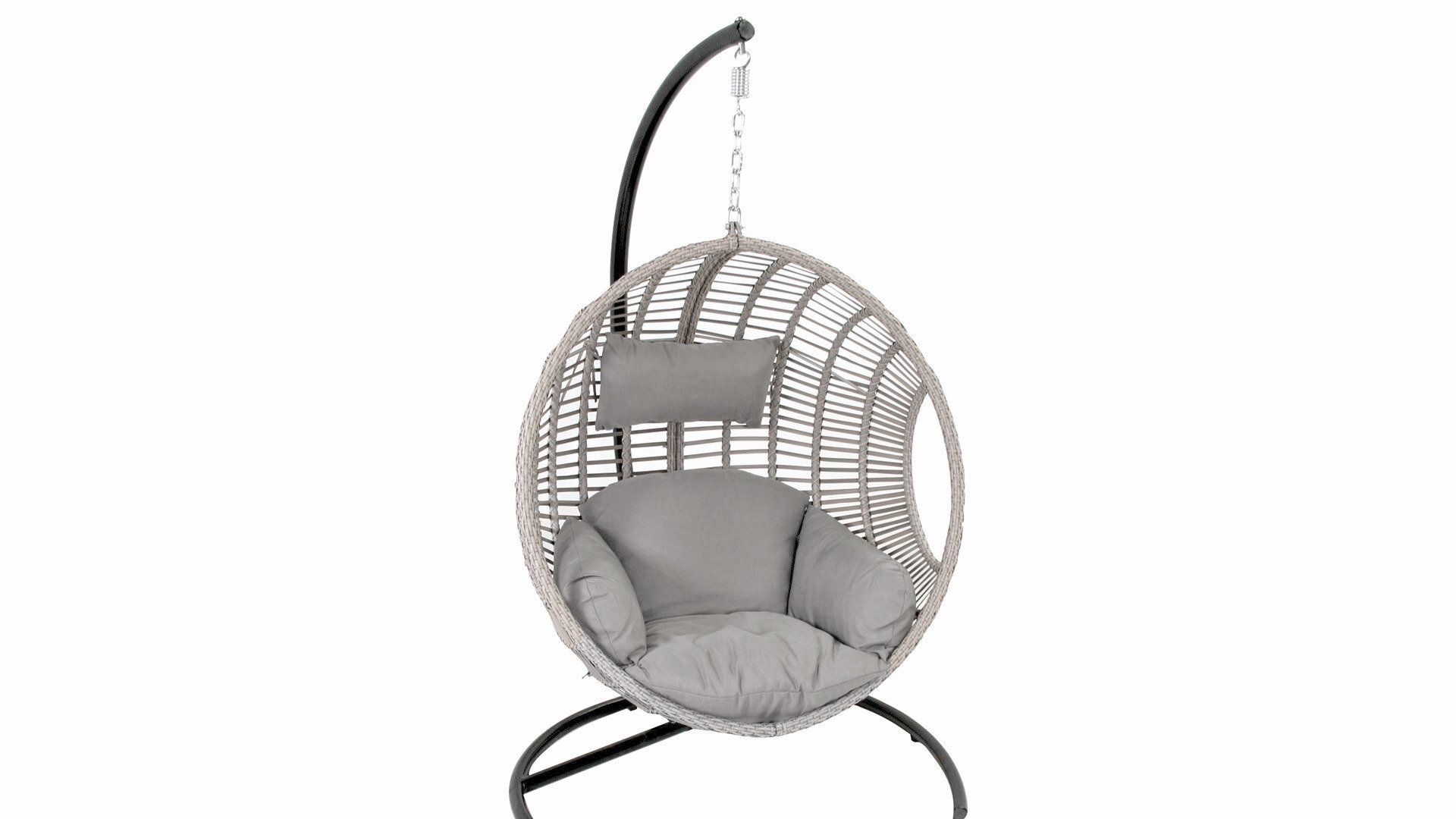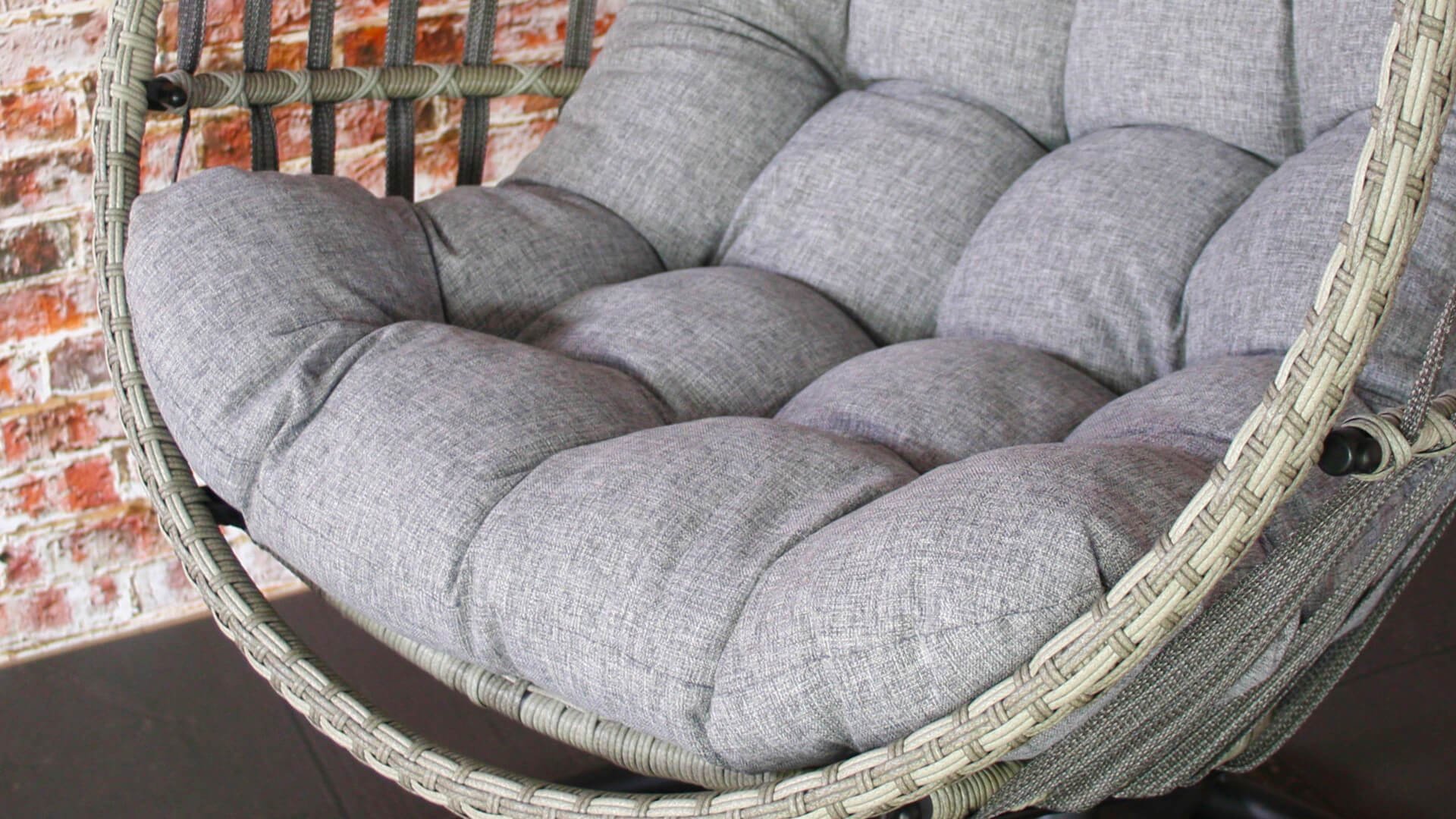 Durch den Ständer können Sie den Stuhl leicht bewegen und überall im Garten platzieren, im Schatten, in der Sonne, auf der Veranda oder auf Ihrer Terrasse. Das Ei kann mithilfe der Stahlkette höher und tiefer gehängt werden.