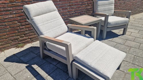 2 x SenS Valerie Verstellbarer Lounge Sessel Alu Taupe Polywood Teak