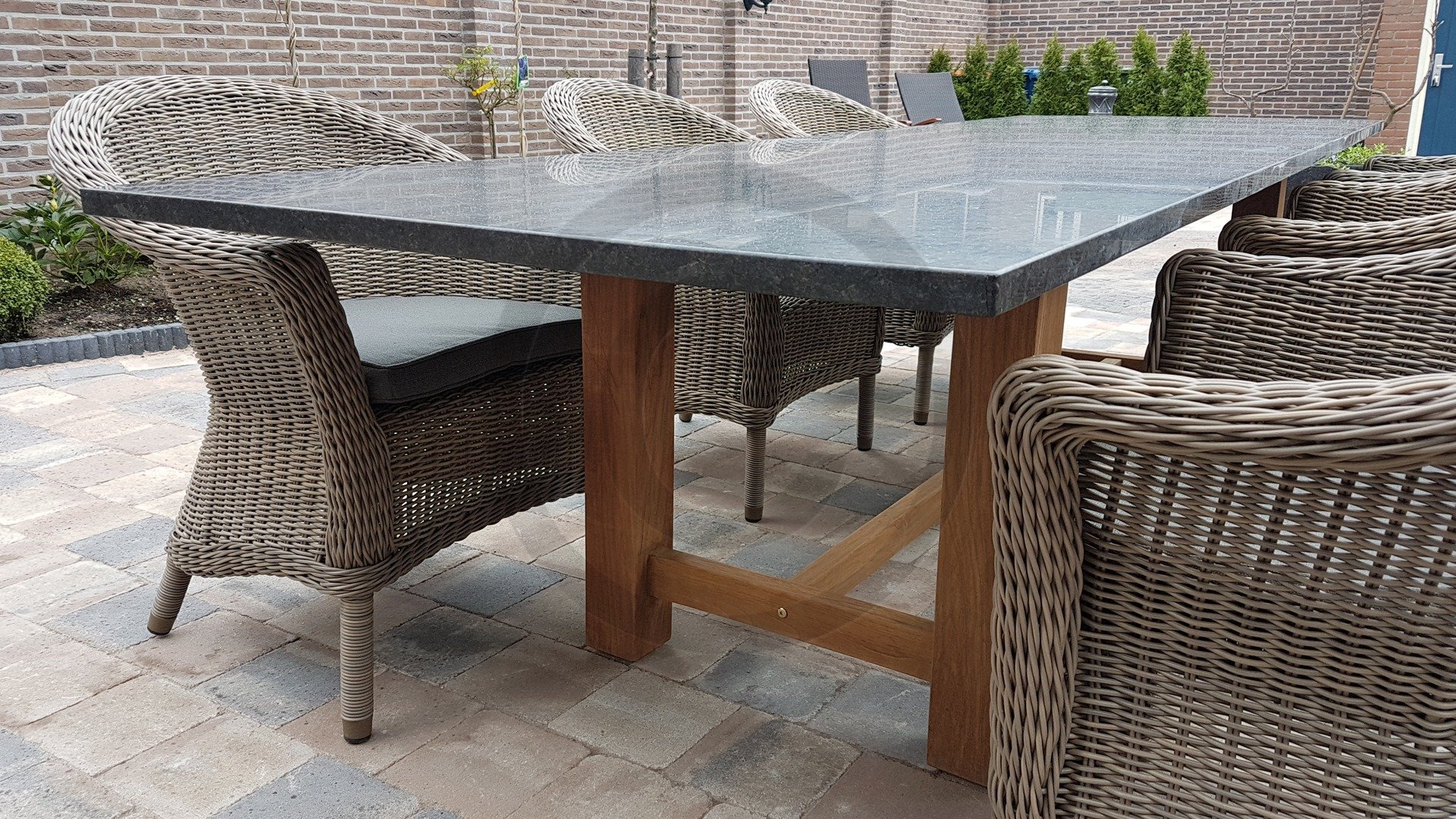 Een granieten tafel van Studio20 staat garant voor kwaliteit. De warme kleuren van het Voss frame in combinatie met het donkere graniet maken van deze tafel een pareltje. Onderhoudsvrij genieten!