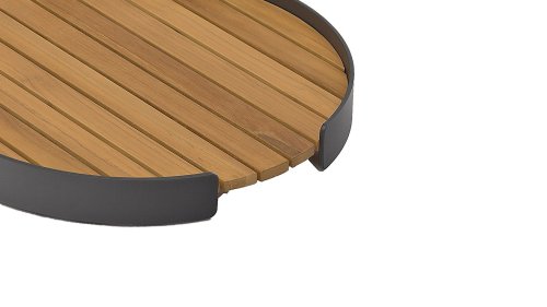 Das anthrazitfarbene Aluminium ist pflegeleicht und witterungsbeständig. Sie können es gut draußen lassen. Das hochwertige Teakholz, das im Tablett verarbeitet wird, hält auch einem Spritzer Regen stand. Wenn Sie die schöne goldbraune Farbe behalten möchten, empfehlen wir Ihnen, das Tablett drinnen zu lagern oder es mit Teak Protector zu behandeln.