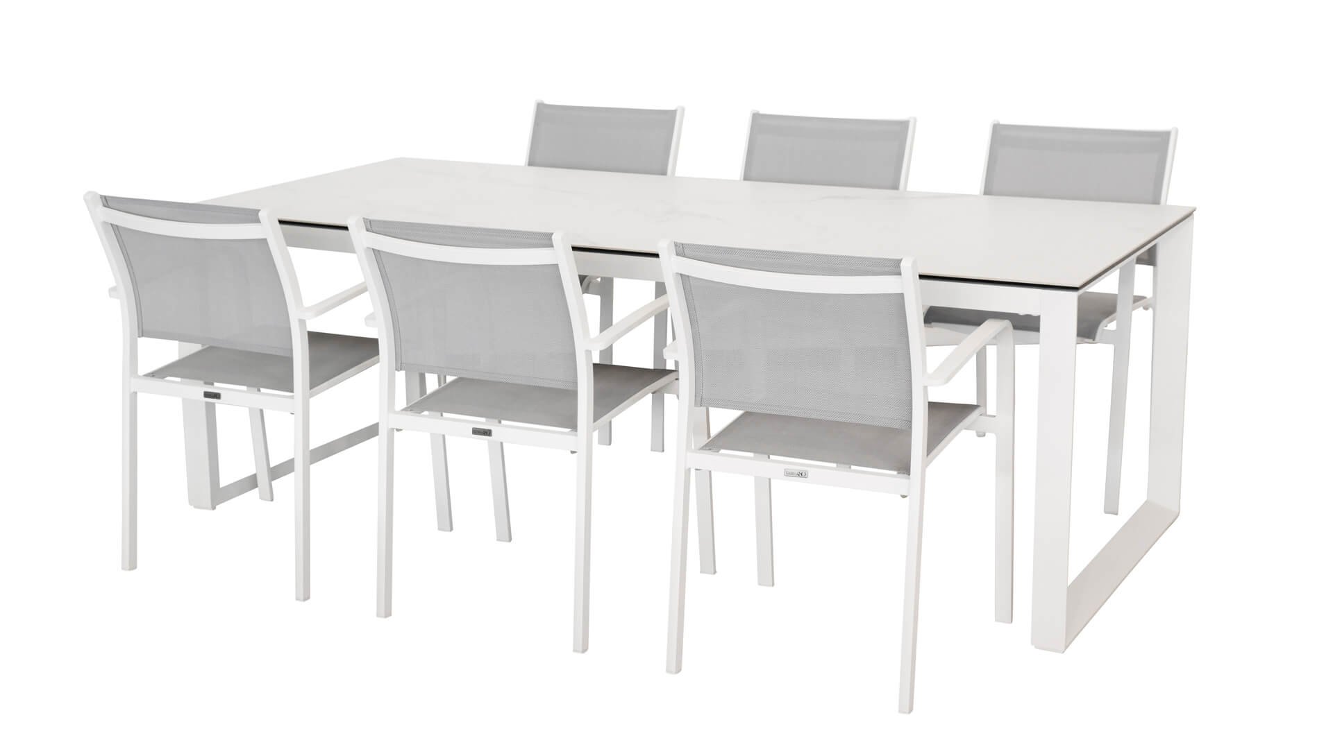 Die Taste by 4 Seasons Outdoor Heritage Tisch 220cm White Keramik ist ein qualitativ hochwertiger Tisch. Das industrielle Design mit seinem eleganten Kufenfuß lässt sich leicht mit einem weißen Dining-Stuhl kombinieren. Der pulverbeschichtete Aluminiumrahmen rostet nicht. Das Keramik ist pflegeleicht und verleiht Ihrem Esszimmer-Set ein elegantes Aussehen. Das Keramik ist mit einem Marmorschliff versehen.