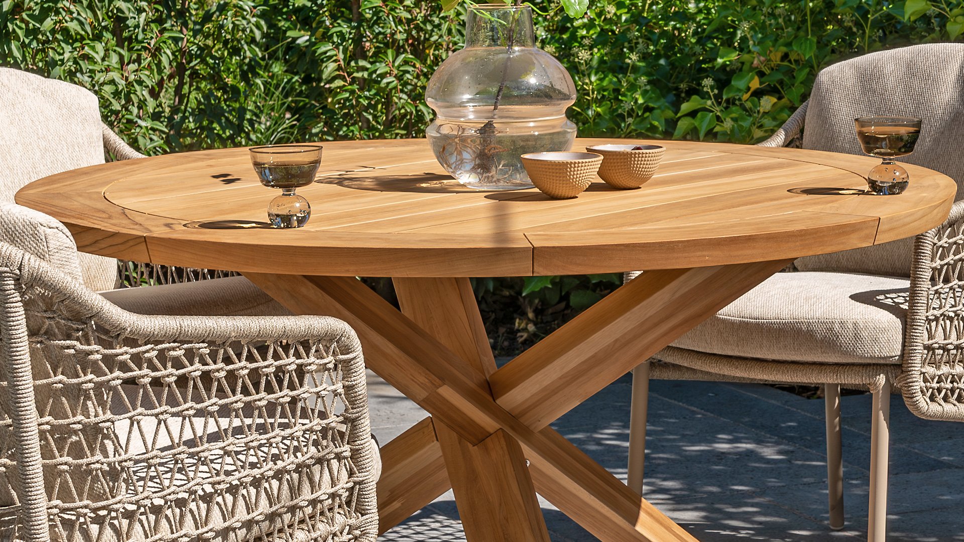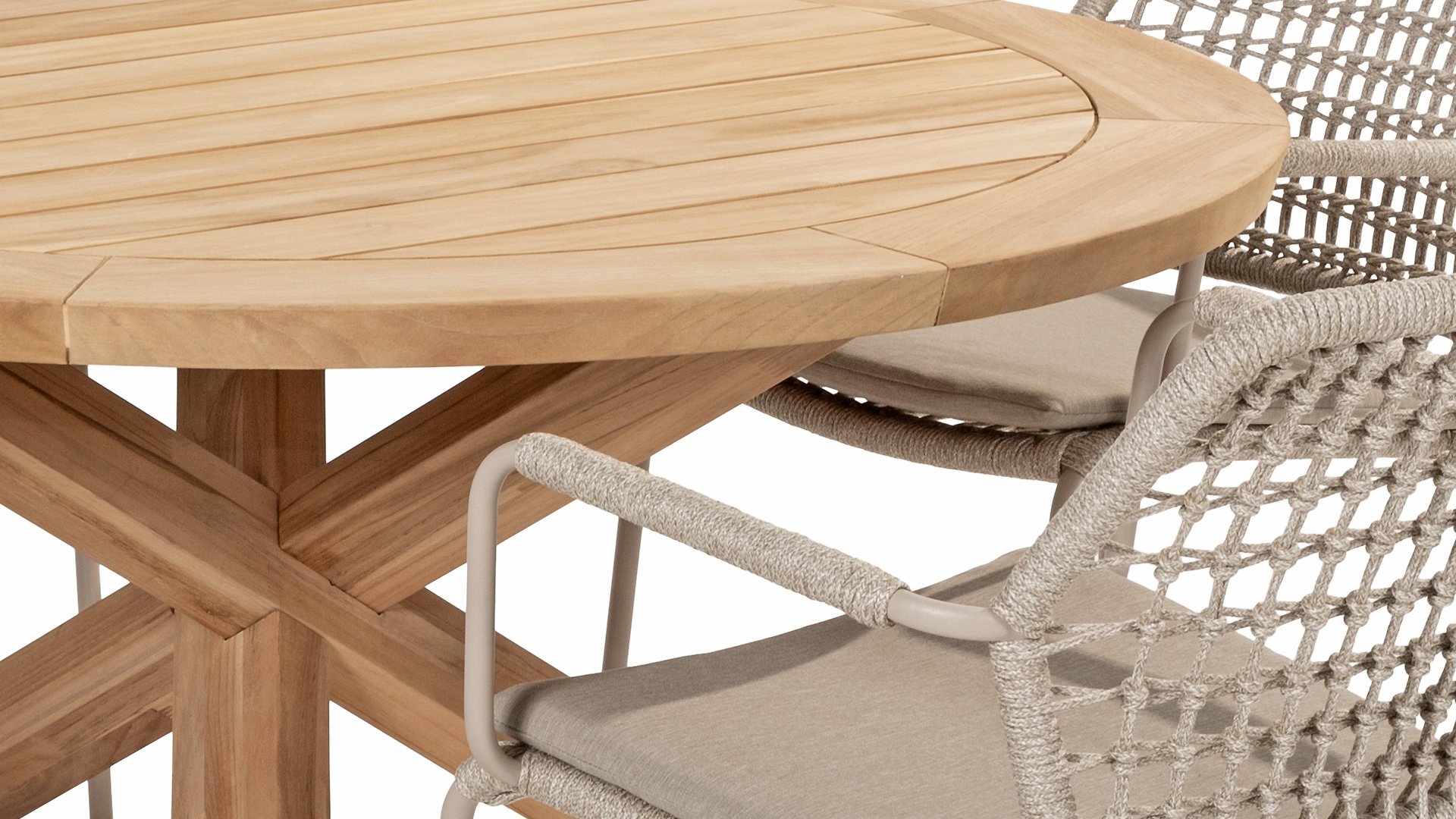 Das Flaggschiff der Kollektion, so kann man diesen Tisch ruhig bezeichnen. Das hochwertige Teakholz in Kombination mit dem schönen Kreuzfuß machen diesen Taste by 4Seasons Prado Ø130cm Tisch zu einem Schmuckstück. Er lässt sich mit nahezu jedem Esszimmerstuhl aus unserer Kollektion kombinieren, sodass für jeden Geschmack etwas dabei ist. Optional kann er mit Prado Lazy Susan kombiniert werden. Die Platte ist sowohl in Teakholz als auch in Keramik erhältlich. Der Prado mit Teakholzplatte ist mit den Tischbeinen Teak, Latte und Anthrazit erhältlich. Sie lieben Keramik? Dann entdecken Sie hier den Prado Keramik mit den Tischbeinen Terre & Latte.