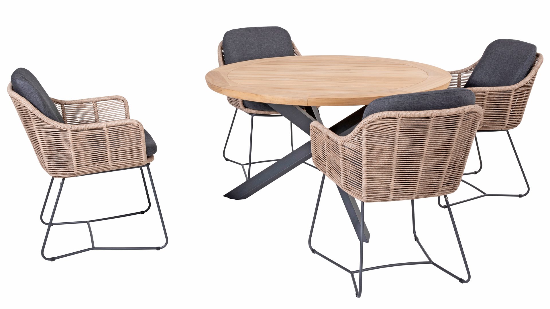 Beautiful, Bold, Belmond. Eine gewagte Kombination aus einem auffälligen Untergestell mit den elegant abgerundeten Ecken des Rahmens und einem geradlinigen Rope-Muster in Anthrazit oder Beige. Taste 4Seasons Belmond hat all das - genießen Sie diese umfangreiche Serie.