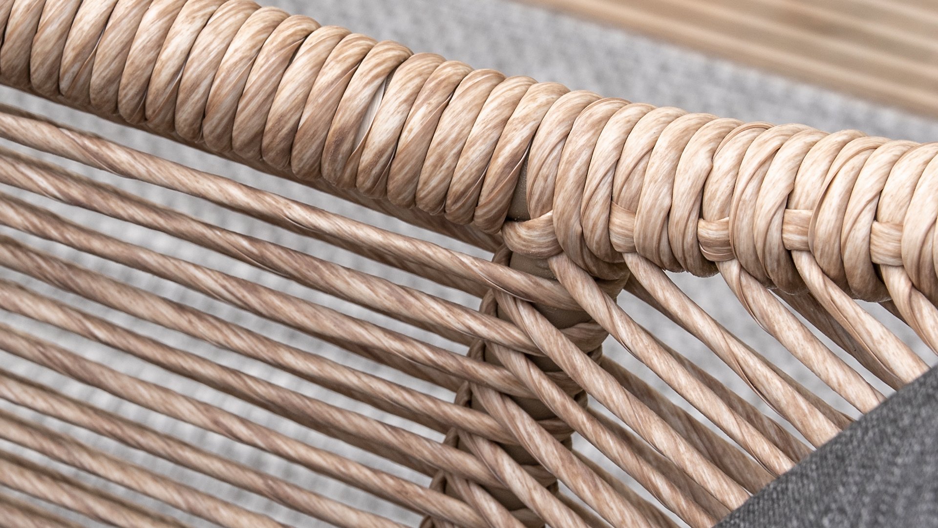 Neben Geflecht und Rope wurde kürzlich ein neues Material eingeführt: Gedrehte Cord. Oder wie wir es der Einfachheit halber nennen: Cord. Cord besteht aus dreifach verdrillten Synthetikfäden. Diese dreifache Drehung verleiht dem Material viel Festigkeit und ist gleichzeitig sehr leicht. Cord ist so leicht, dass es leichter als Wasser ist. Es ist etwas steifer als Seil, aber weniger steif als Weide. Durch die Verdrillung der Cord hat sie die Optik von Tauwerk/Rope und sieht sehr natürlich aus. Wir können es zu allen möglichen Strukturen flechten und dehnen, und da wir das Material in allen Farben herstellen können, sind die Möglichkeiten endlos.