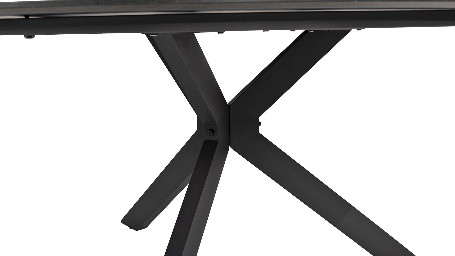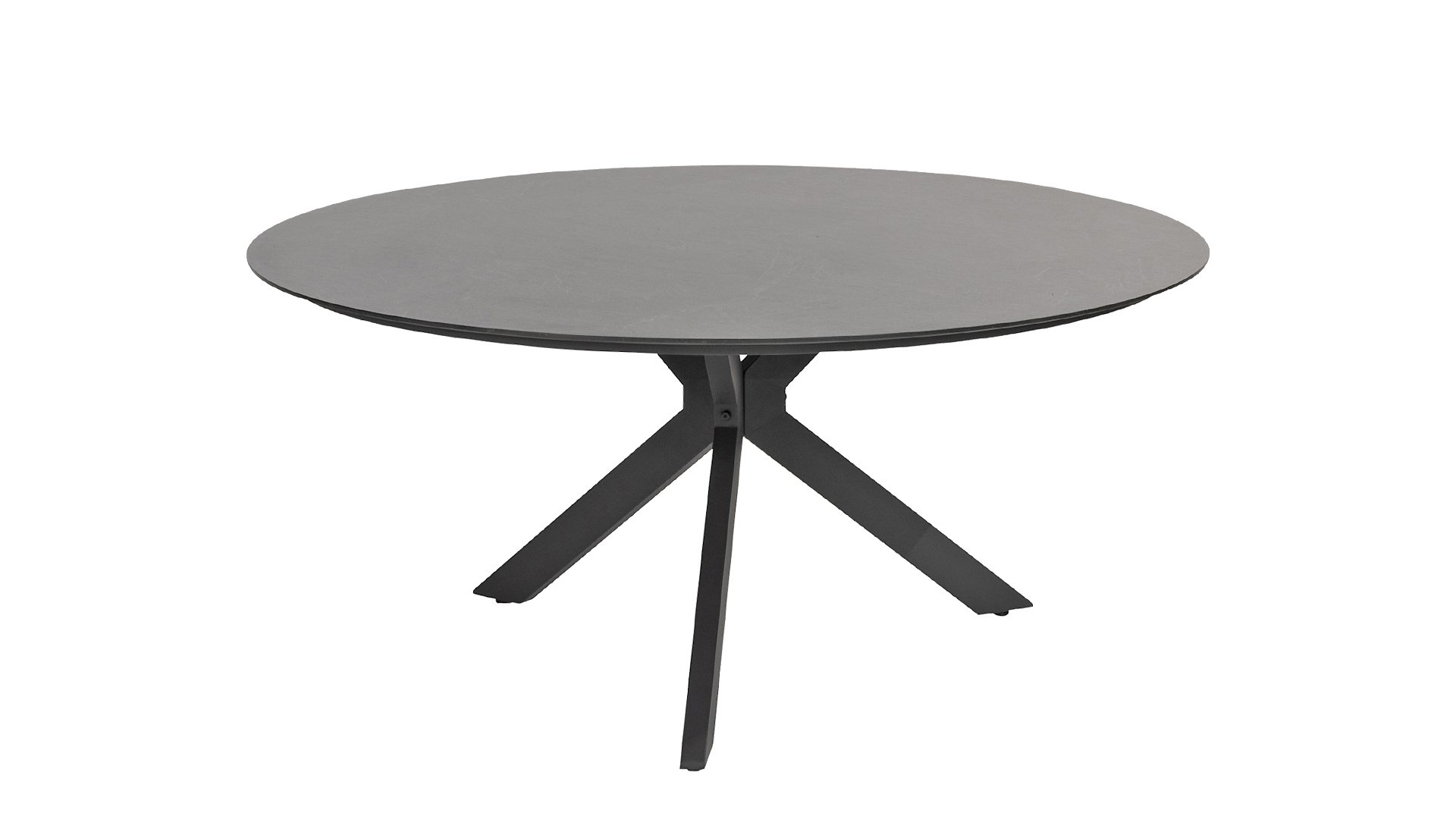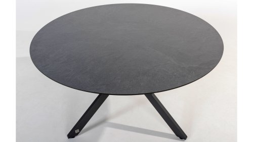Der Locarno Tisch von 4 Seasons Outdoor ist ebenfalls erhältlich. Die HPL-Platte aus Schiefer wird auf den Terrassen verlegt und wirkt modern und kraftvoll. Das dunkle Anthrazit hat klare Adern, die dem Blatt ein natürliches Aussehen verleihen. Das Kreuzbeingestell verfügt über einen modernen und eleganten Esstisch. Auf der anderen Seite der Tür stehen 4 oder 5 Stühle auf dem Tisch.