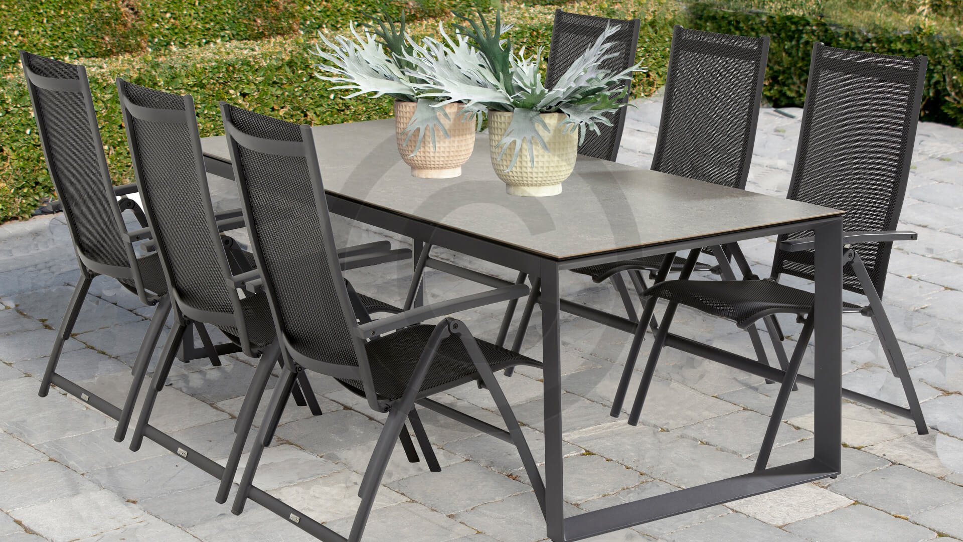 Aluminium ist sehr wartungsfreundlich und leicht. Diese praktischen Möbel sind leicht zu reinigen. Unser Aluminium mit einer festen Pulverbeschichtung ist witterungsbeständig und UV-beständig. Aluminium ist nicht rostanfällig, zeitlos und stilvoll.