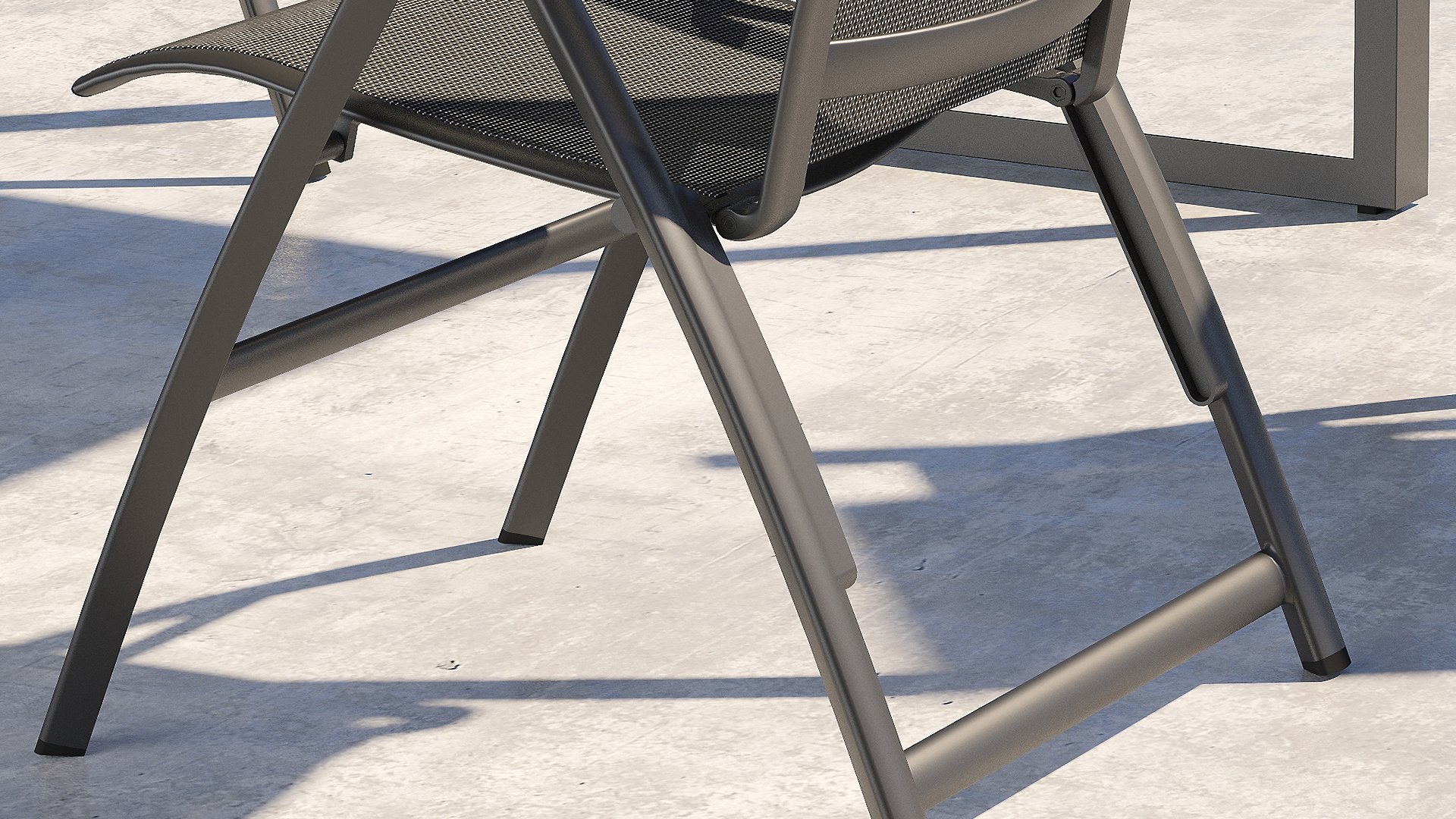 Textilene besteht aus gewebten Polyesterfasern, die zusammen ein robustes Gewebe bilden. Dank seiner Zusammensetzung ist es ein sehr strapazierfähiges, langlebiges, formstabiles und farbechtes Material. Da es sich um ein Gewebe handelt, ist es wasserdurchlässig und trocknet schnell. Dies verleiht ihm eine lange Lebensdauer und macht es ideal für den Außenbereich. Textilene ist pflegeleicht und daher besonders praktisch für den Einsatz im Freien. Es lässt sich leicht reinigen, da es im Wesentlichen aus Polyester besteht. All diese Eigenschaften machen Textilene zu einem angenehmen Material für den Außenbereich.