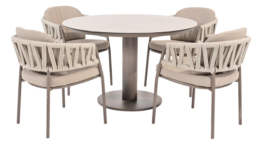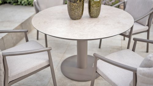 Lernen Sie Taste Sarah kennen, den runden Tisch, der Eleganz und Funktionalität mühelos vereint. Dieser schöne Tisch ist ein echter Hingucker in jedem Garten oder Essbereich. Sein rundes Design schafft eine gemütliche, einladende Atmosphäre, in der alle am Tisch in Kontakt bleiben. Die hochwertig bedruckte Keramikplatte sorgt nicht nur für eine luxuriöse Optik, sondern ist auch außergewöhnlich robust, kratzfest und pflegeleicht. Das zentrale Bein bietet maximale Beinfreiheit und verleiht dem Tisch einen modernen, luftigen Look. Taste by 4 Seasons Outdoor Sarah ist in zwei Ausführungen und zwei Farben erhältlich. Der Tisch ist in zwei Größen erhältlich: 120x75cm (Dining) und 130x69cm (Low Dining) in den Farben Latte und Terre. Entdecken Sie sie unten: