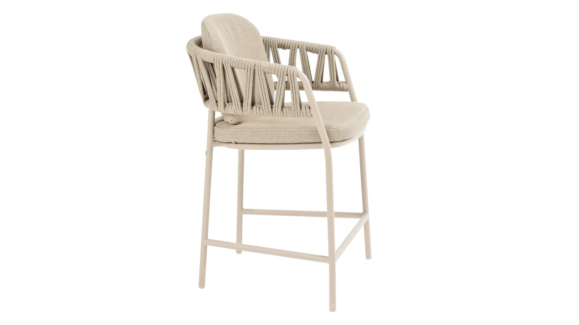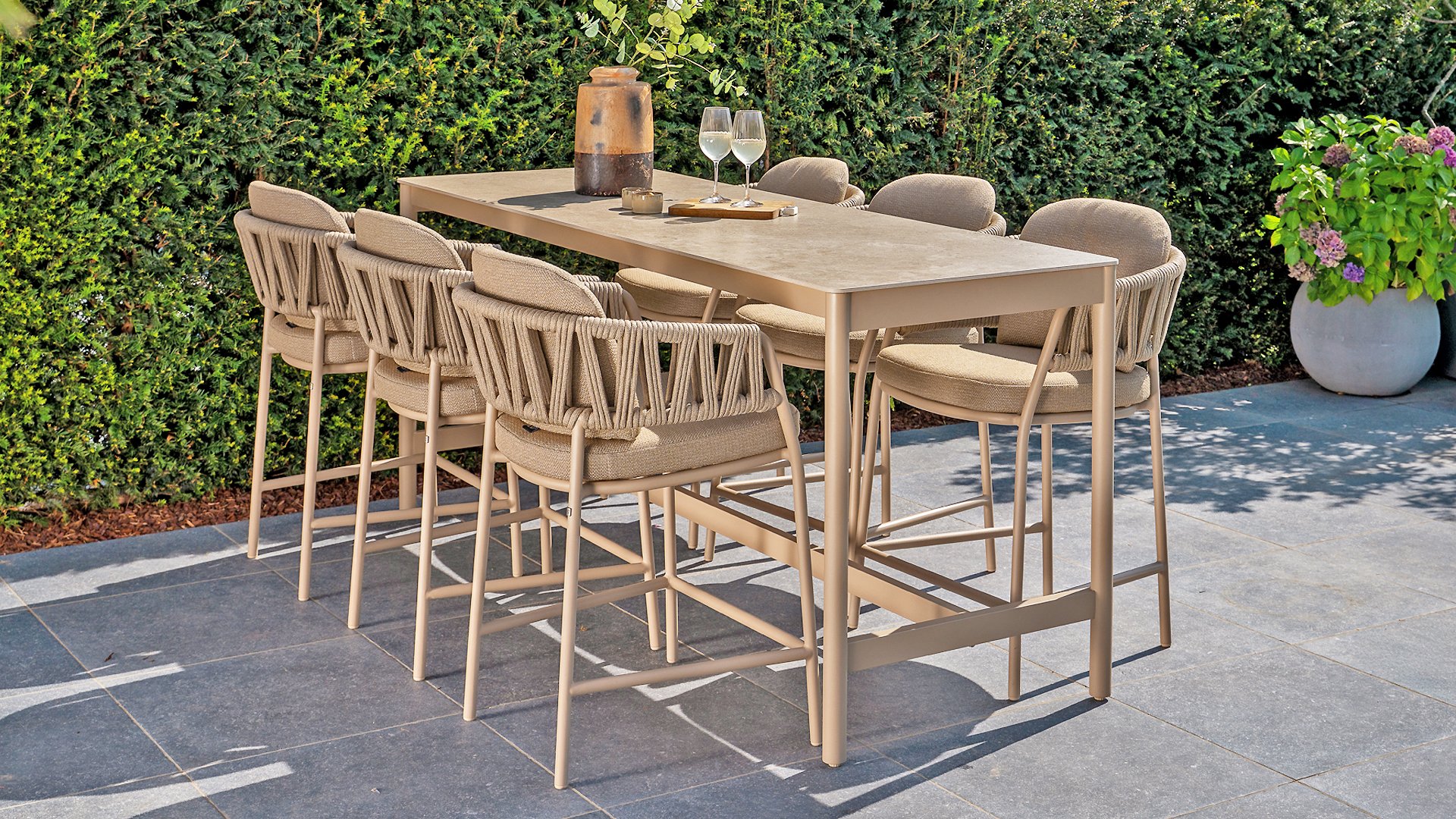 Erleben Sie luxuriöses Wohnen im Freien: Der Calma Hochstuhl von Taste by 4 Seasons Outdoor – Verschönern Sie Ihren Außenbereich mit dem Calma Hochstuhl von Taste by 4 Seasons Outdoor. Dieser Stuhl ist mehr als nur ein Stuhl; er ist ein Statement zeitgenössischen Designs und bietet höchsten Sitzkomfort, der perfekt zum modernen Lebensstil passt. Als Herzstück der exklusiven Taste by 4 Seasons Outdoor Kollektion vereint der Calma den vertrauten Komfort eines traditionellen Esszimmerstuhls mit der modernen Eleganz eines Barhockers. Speziell für erhöhte Essbereiche konzipiert, schafft dieser Stuhl eine dynamische und gesellige Atmosphäre auf jeder Terrasse, jedem Balkon oder jeder Veranda. Ideal für lange Sommerabende, gemütliche Drinks oder ein entspanntes Essen in der Sonne.