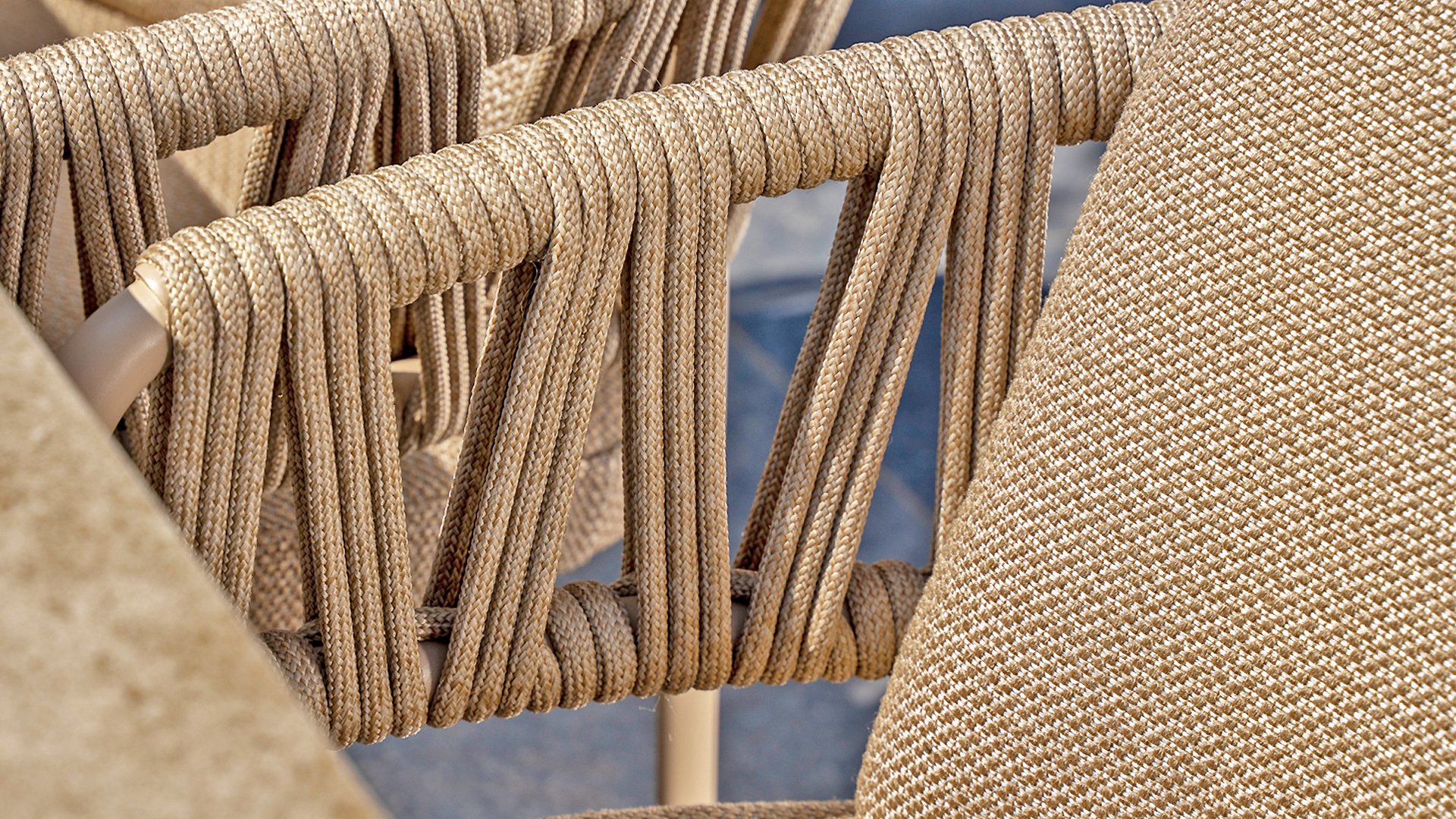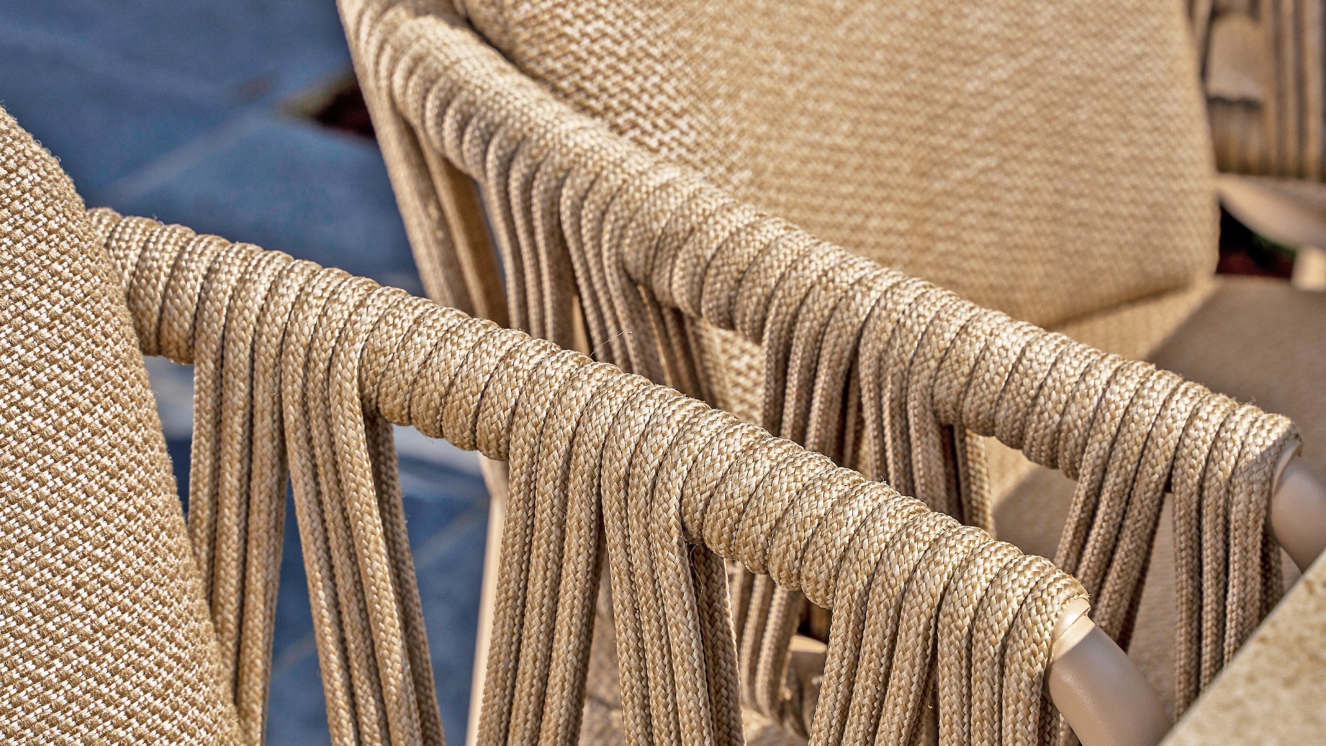 • Hervorragender Sitzkomfort: Der Sitz ist stilvoll mit taupefarbenem Seilgarn bezogen. Dieses Material verleiht dem Stuhl nicht nur eine luxuriöse, warme Optik, sondern ist auch flexibel und bietet hervorragende ergonomische Unterstützung.