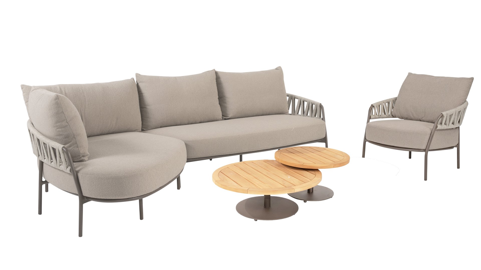 Calma von Taste by 4 Seasons – Graufarbenes Rope, Terre-farbenes Gestell und ultimativer Sitzkomfort.