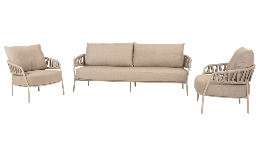 Mit dem Calma Lounge-Set vereinen Sie Stil, Komfort und Langlebigkeit. Taupefarbenes Seil und ein Latte-farbenes Gestell ergeben eine ruhige, natürliche Farbkombination, die perfekt zum Namen Calma passt. Schaffen Sie sich Ihre eigene Outdoor-Oase und genießen Sie jeden Moment in höchstem Komfort.