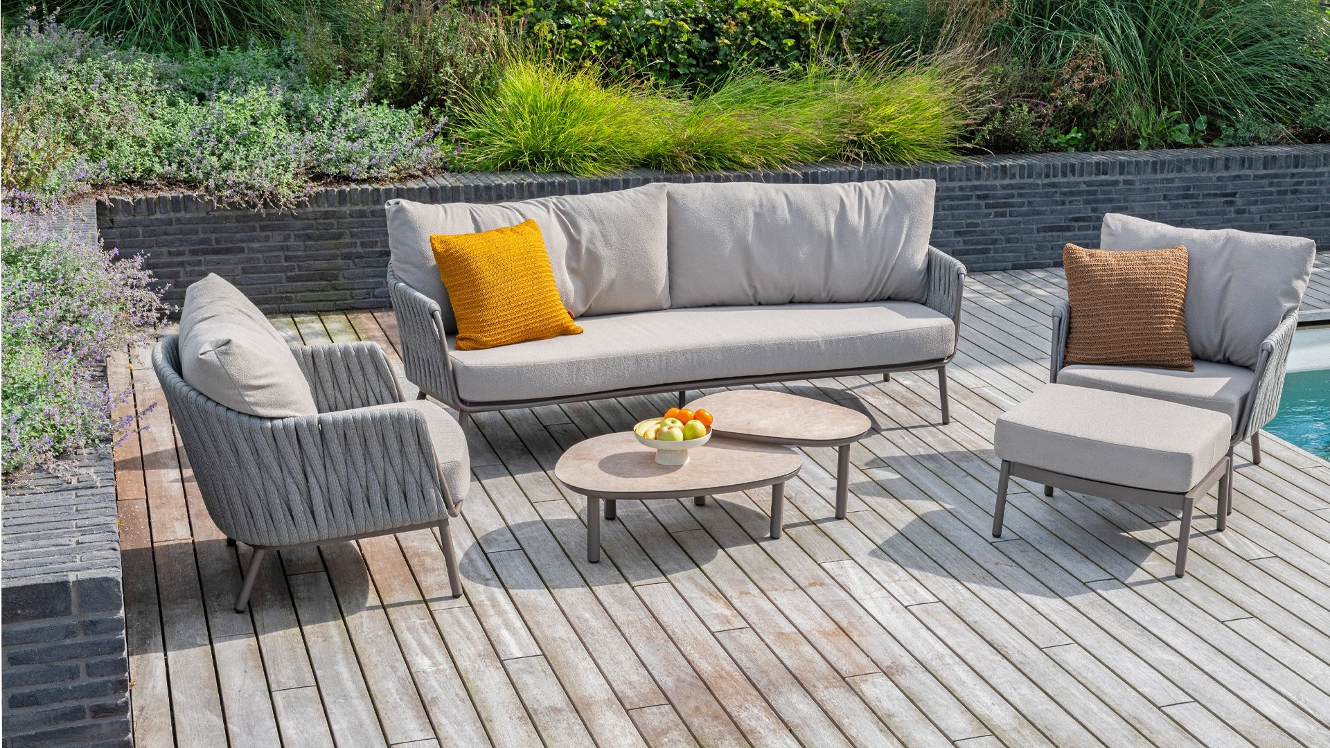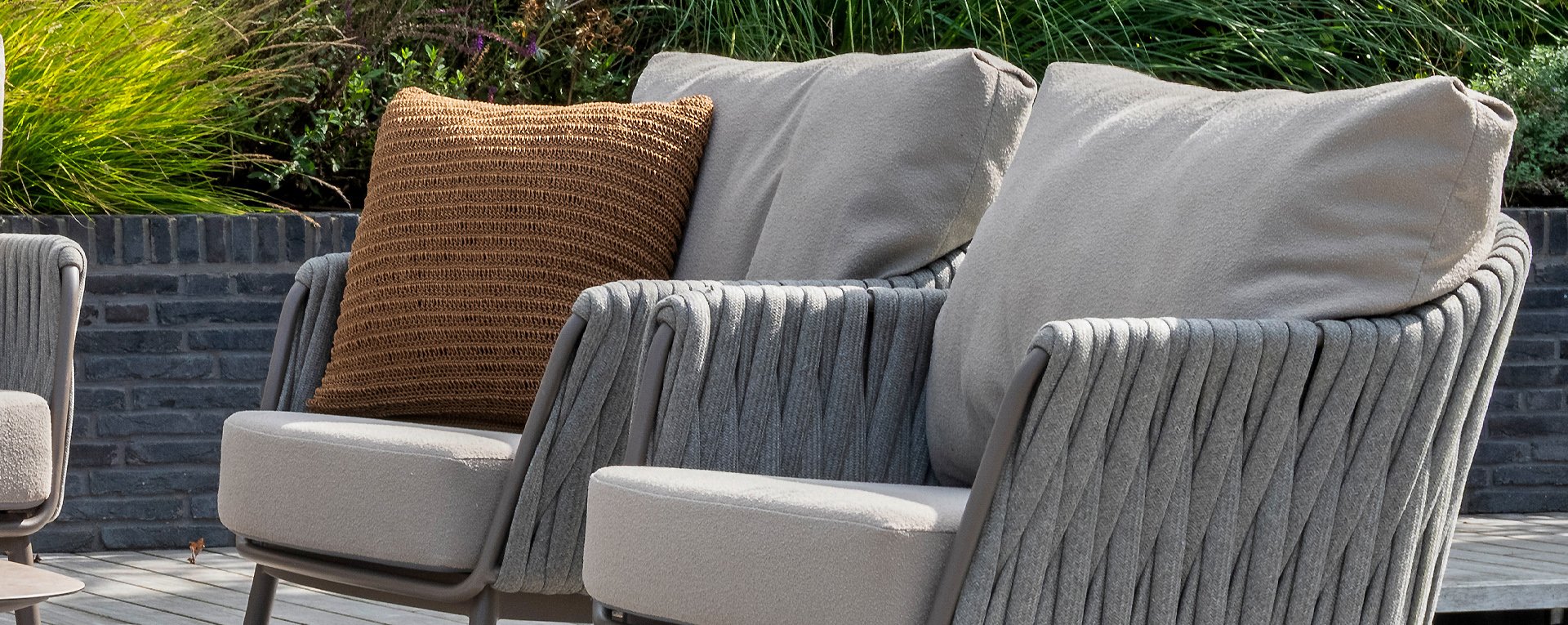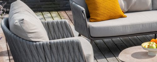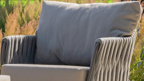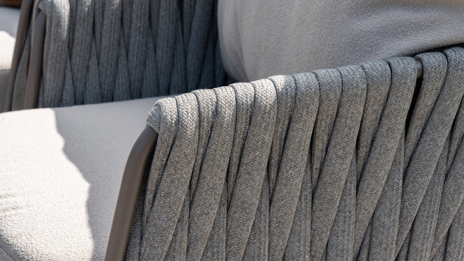 Erleben Sie den Komfort von Cannes. Diese Kollektion lädt Sie ein, stilvoll zu entspannen, mit dem wunderschön geflochtenen Seildesign und den bequemen Kissen. Ob Sie sich für das niedrige Ess-Set entscheiden oder die entspannende Lounge-Variante bevorzugen – Cannes bringt ultimativen Komfort und Eleganz auf Ihre Terrasse oder Ihren Patio. Die perfekte Wahl für lange Sommertage.