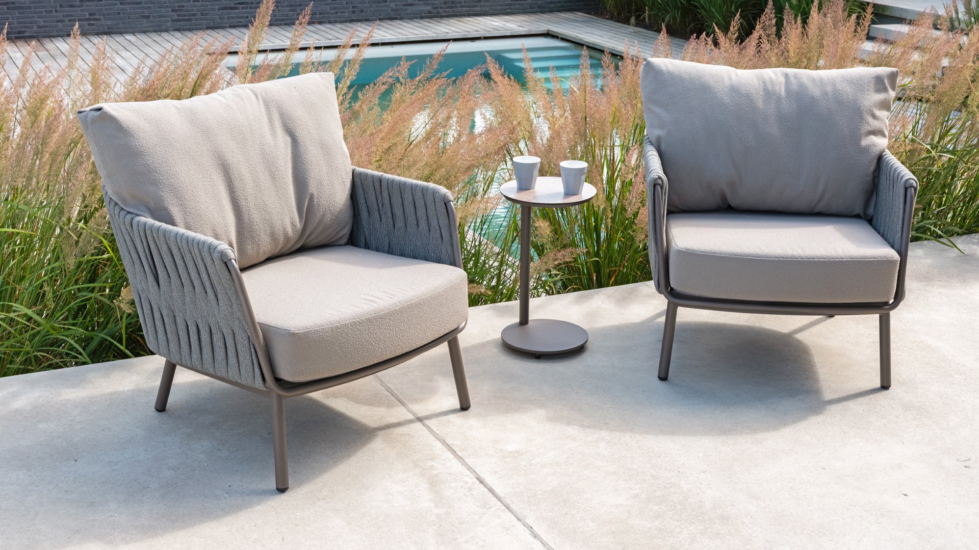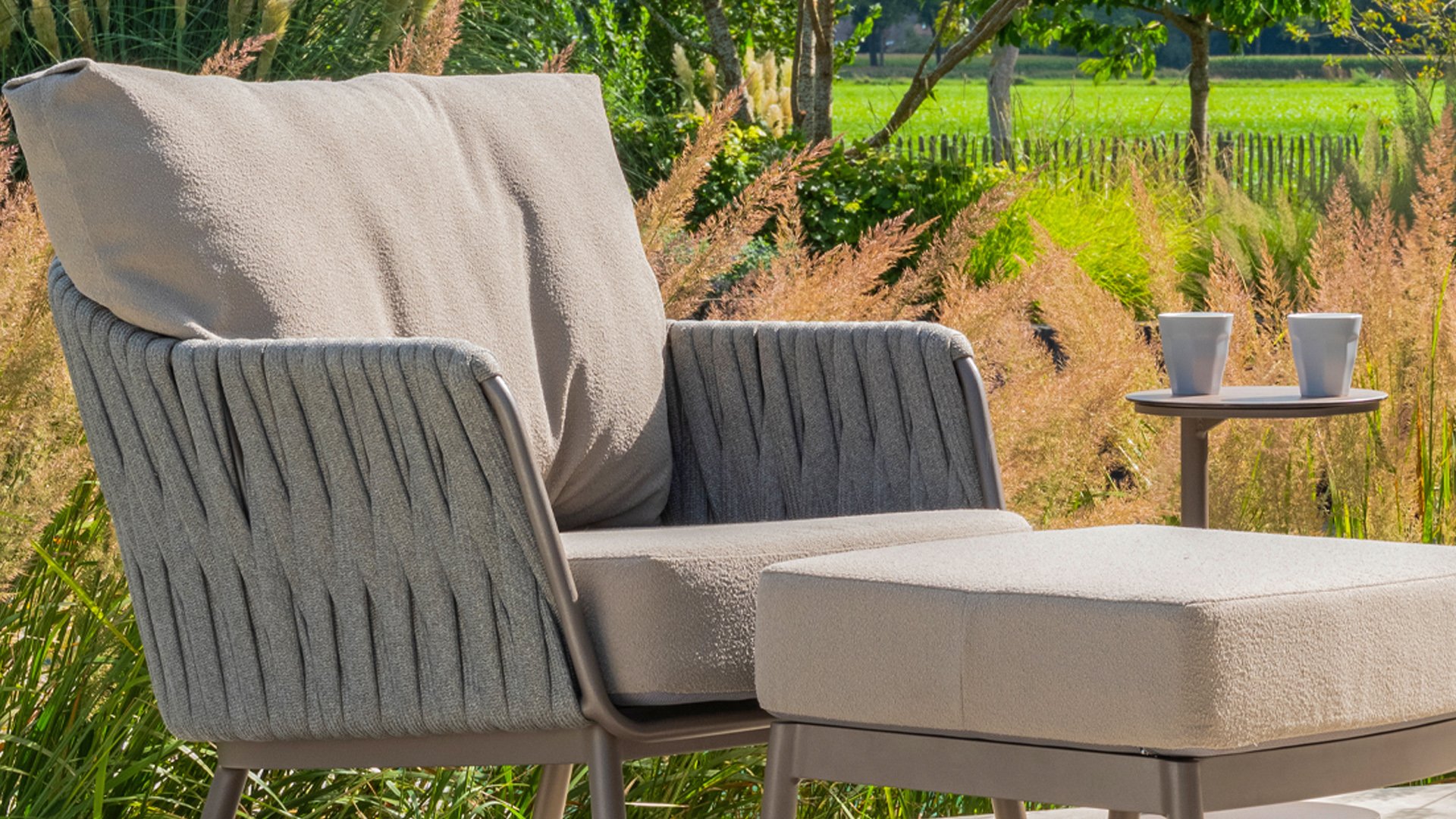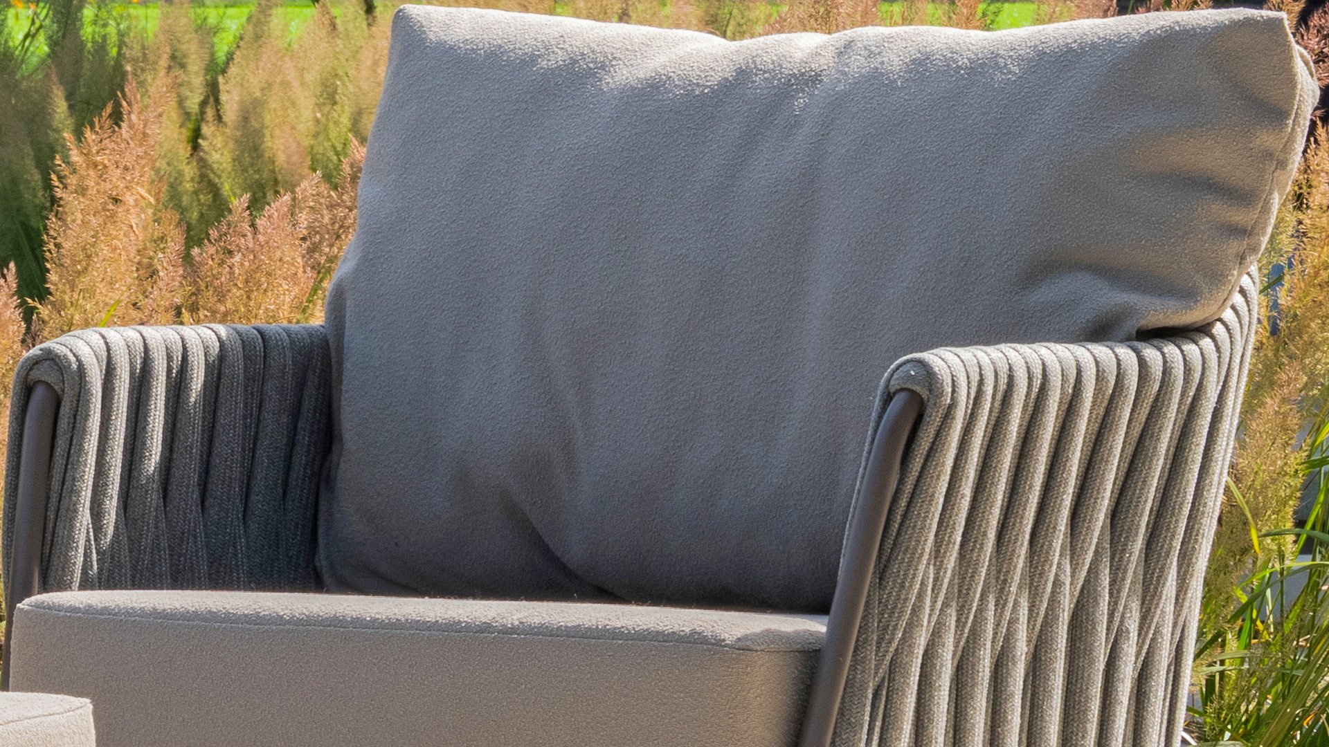 Langlebige Materialien: Pulverbeschichtetes Aluminium und Rope-Gewebe sind wetterbeständig und langlebig, sodass der Sessel ideal für den Außenbereich ist.